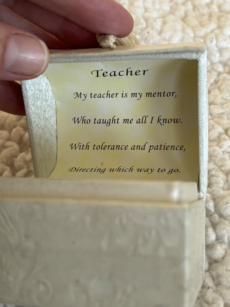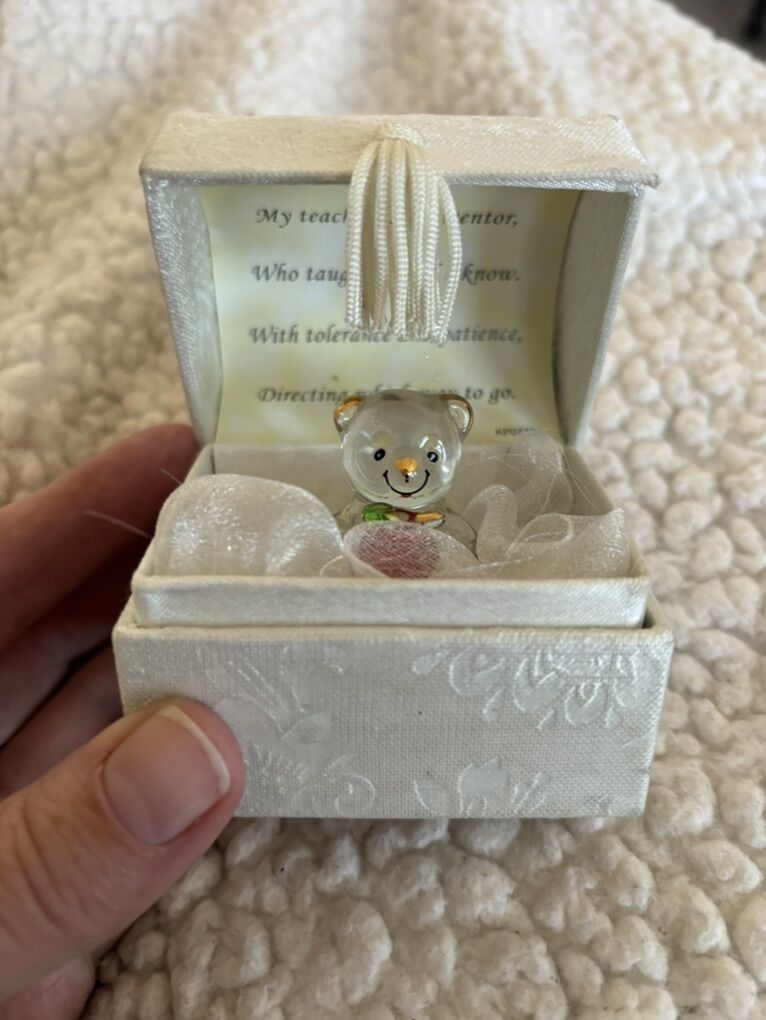 Thank You Teacher Bear Hold With Glass Carrying A Red Apple With White Tassels Box needs some touch ups. Bear is cute holding the apple. No advance payment Payment and pick up are the same time.