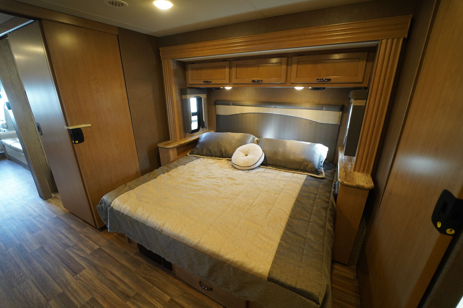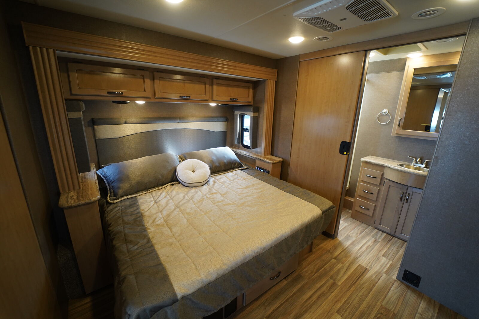 INCREDIBLE MOTORHOME WITH AN AWESOME LAYOUT! 2 FULL BATHROOMS! Rear KING Sute with private bathroom, SPACIOUS MID SECTION with FULLY EQUIPPED KITCHEN, 2nd bathroom, opposing sleeper sofa AND sleeper dinette, front cab with power queen bunk! ALL OF THIS IN A 32ft PACKAGE! BEAT THAT!!! ONLY 15987 miles! Meticulously maintained and in excellent condition!