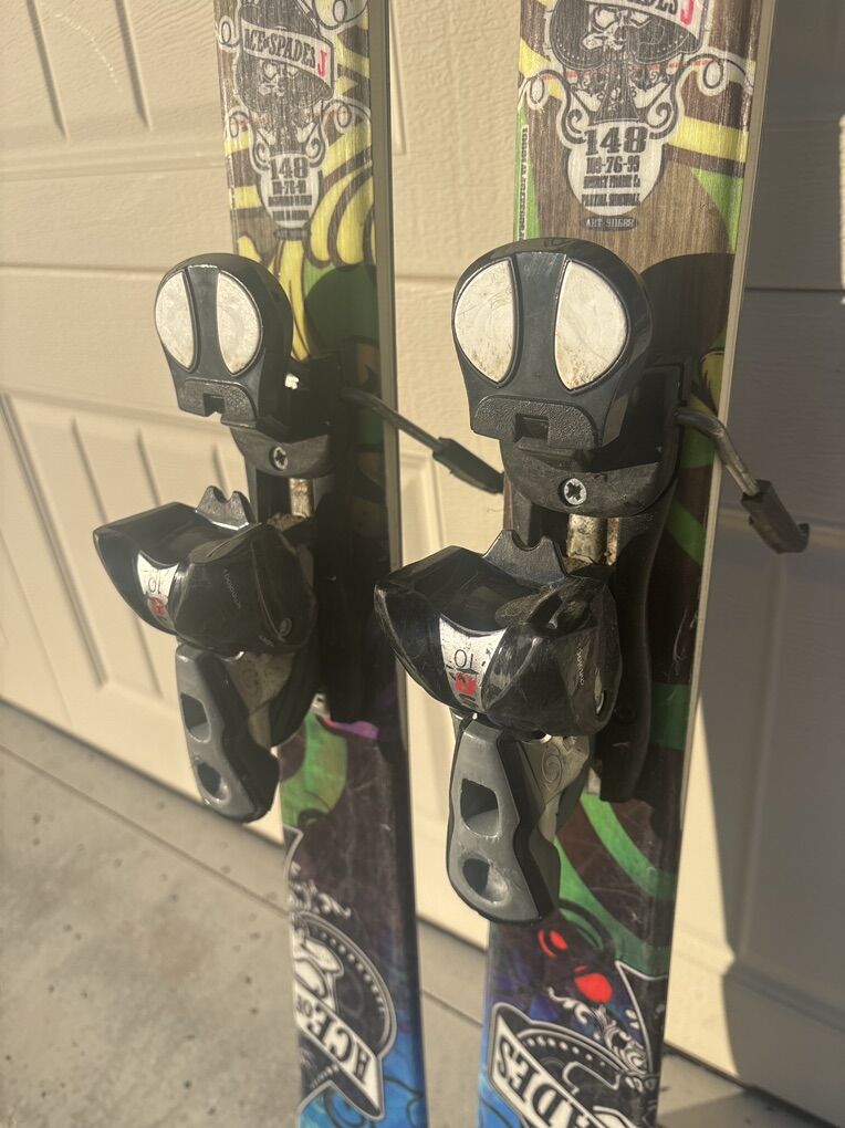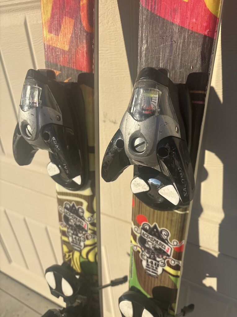 VenmoNice all area skis twin tip 148 cm Adjustable Salomon S 810 bindings. Base and edges in good condition, Look at pictures, good price!!!