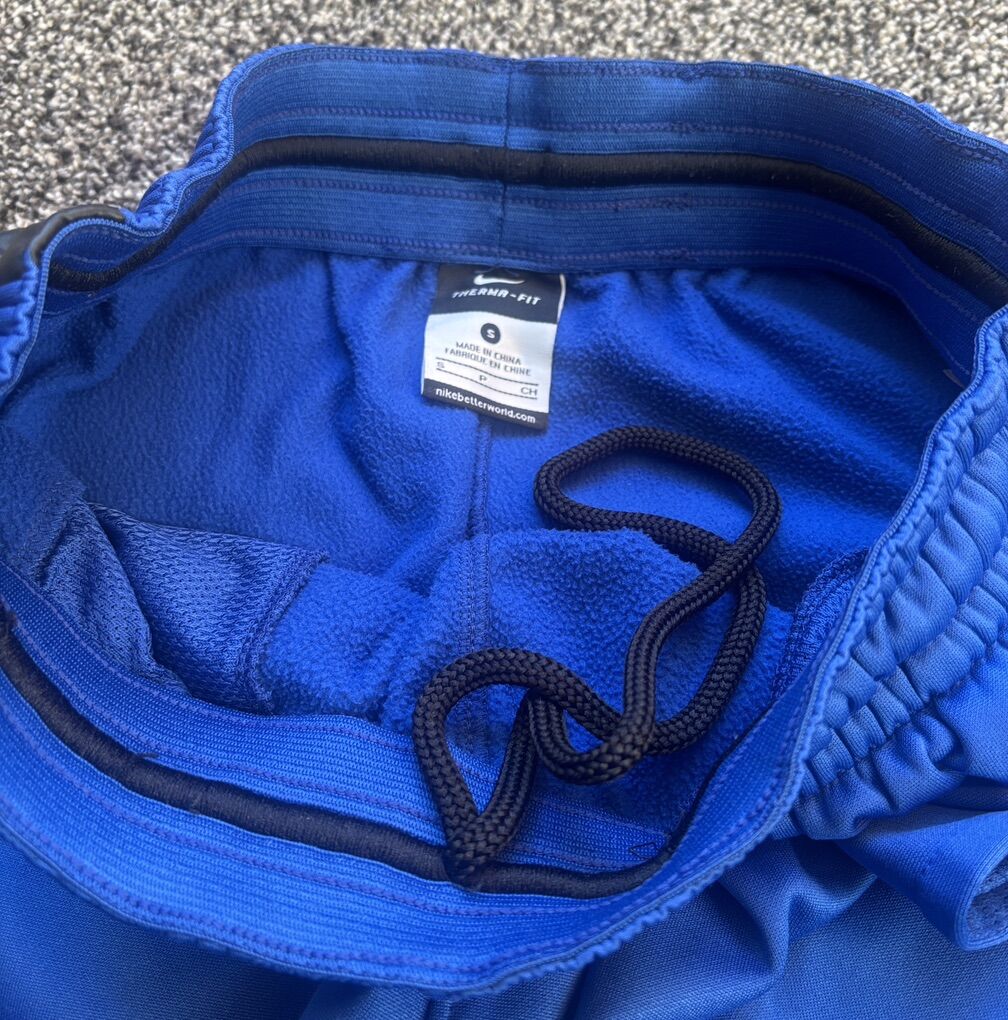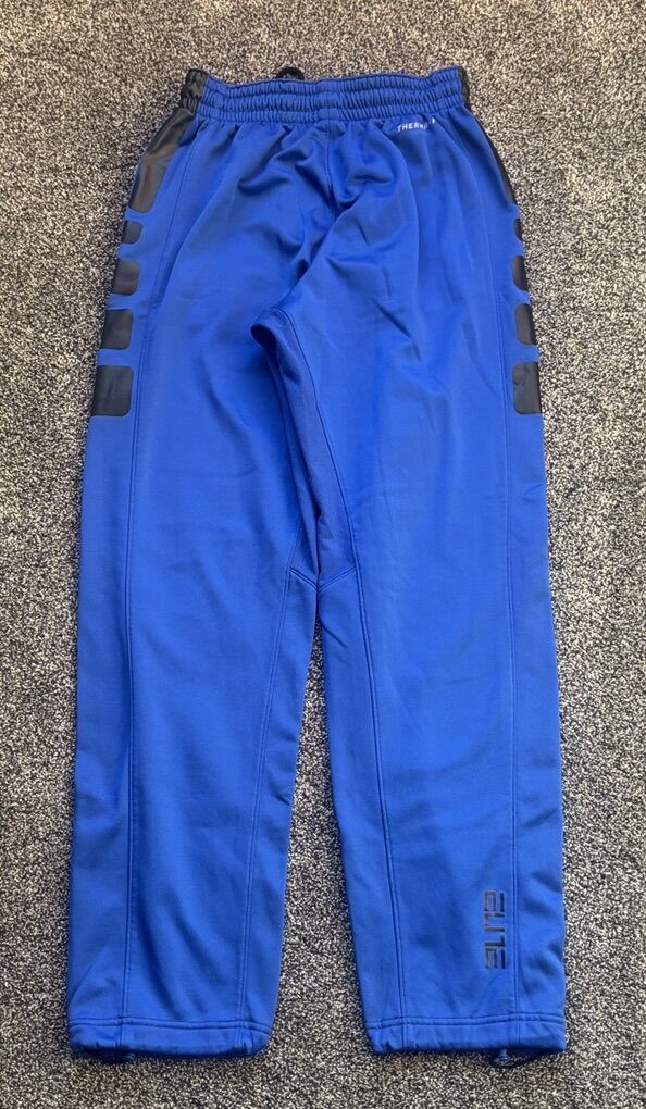 Nike Elite blue sweatpants in men's size small in like new condition. Has adjustable waistband and the bottom of the legs can be adjusted to jogger style. Smoke-free, pet-free home.