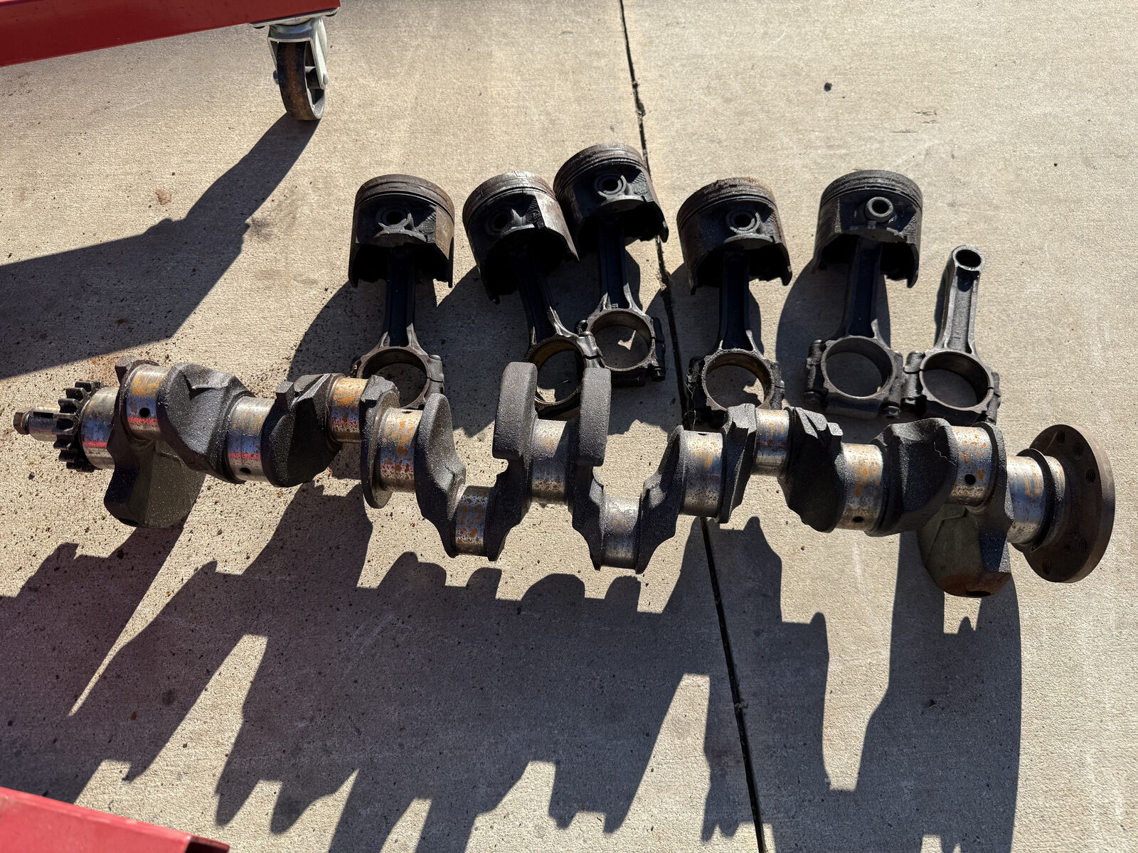 Venmo1987 4.2L (258ci) block, crankshaft, rods. Block looks good, but cylinders will need bored at least .010. Crank rod and mains need turned, probably .010 would do it. Rods look good. This crank is the late model lightweight crankshaft that is sought after for the 4.7L stroker build from a 4.0L straight six. You would need the rods and crank balancer for that, too. I will sell separately, so let me know what you want and we'll make a deal. Text is best. $250 for all.