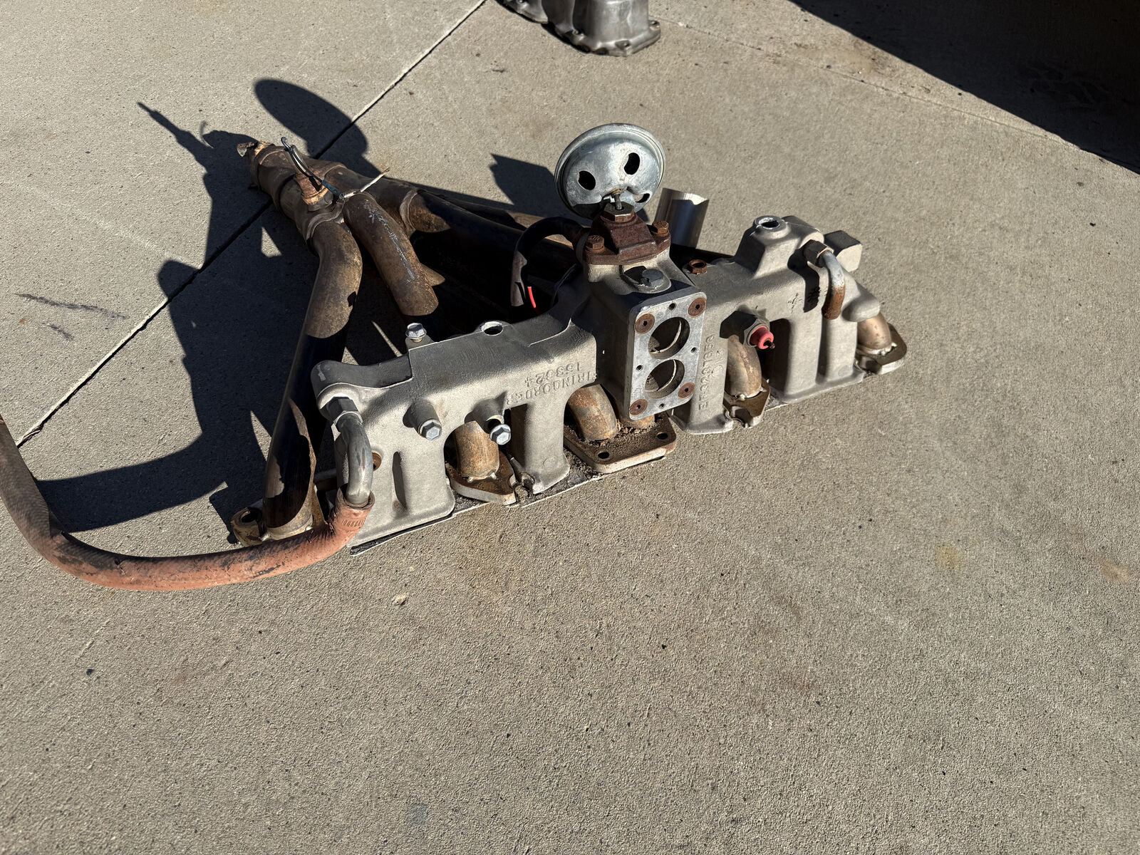 VenmoTube header and intake manifold from a 1987 Jeep 4.2L engine. Will also fit earlier 258ci engines. The header is 3 into 2 into 1 style and the tubes are good thick metal, not cheap lightweight metal. Tubes are in good condition, O2 sensor bung welded in. The old exhaust system was cut off with a hacksaw, so a new flange will have to be welded on (see photo). The intake manifold is the 2-barrel style, works well with a Weber 38 carb. These units will mount on the older 258ci engines as a pair, but the header will not work with the old-style cast iron intake manifold without special adapter spacers. I will sell separately, so let me know what you want and we'll make a deal. $300 for both.