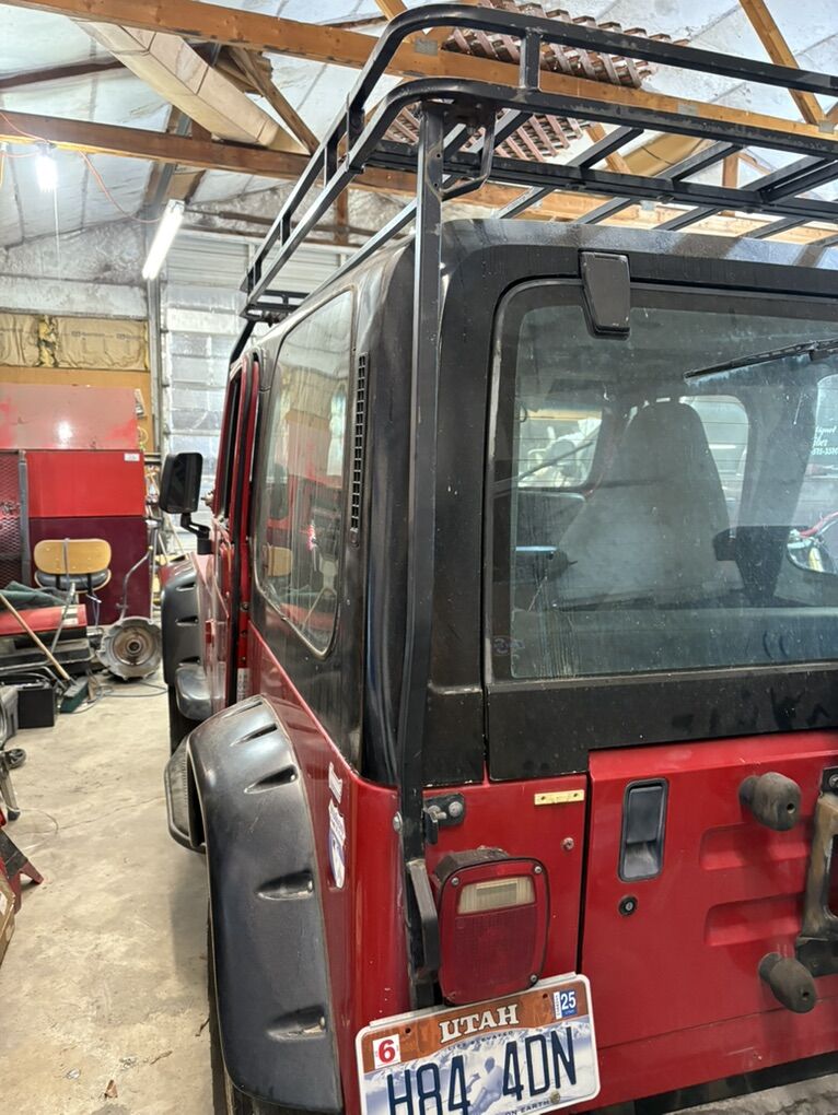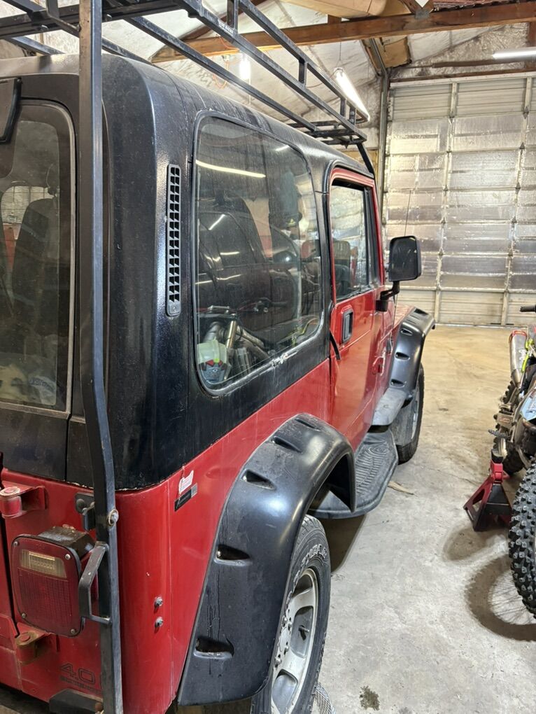 1994 yj . Engine removed , has 4.0 liter with hole in block another good block , pistons, crankshaft, has aftermarket bumper front and rear 2”” lift and body lift. New tires, roof rack, good 4.3 liter v6 to go with it for extra 300 bucks. Disc brakes conversion in rear axle . Good stereo system included.air differential lockers both front and rear Tow bar , plug in wiring to brake and stop and turn signals