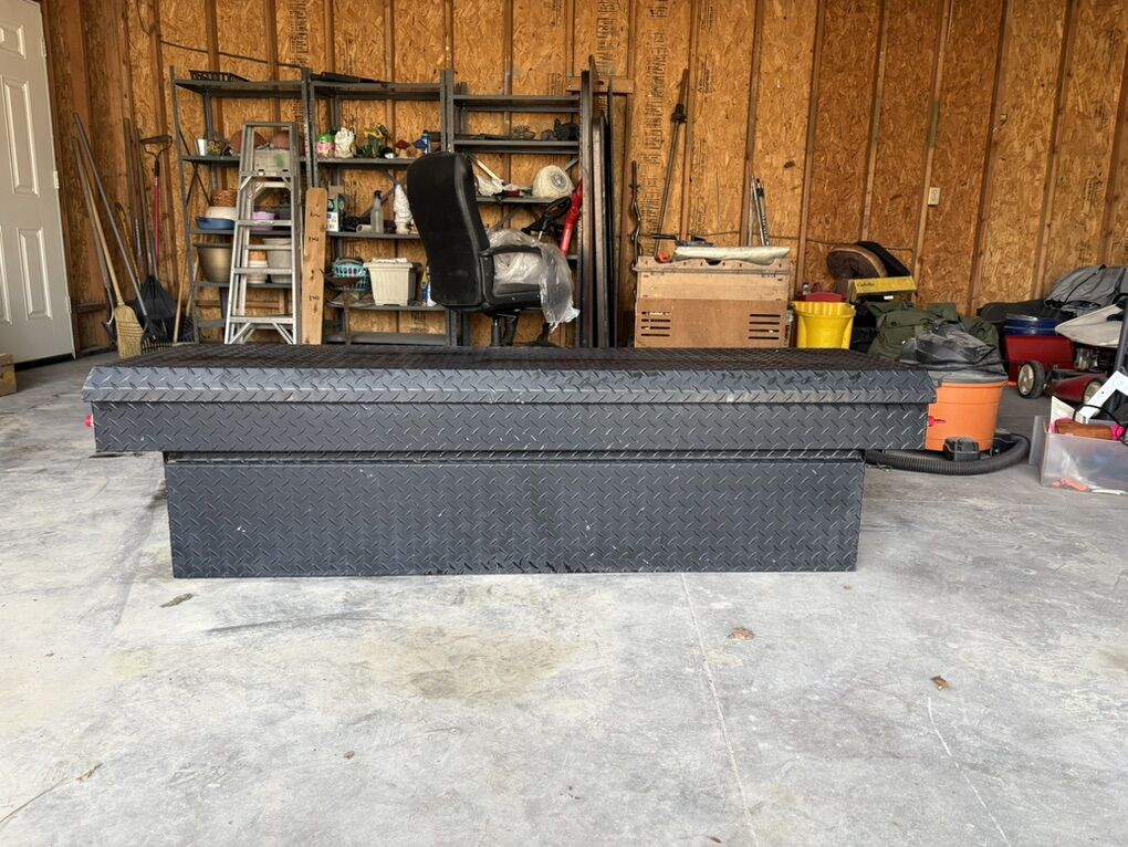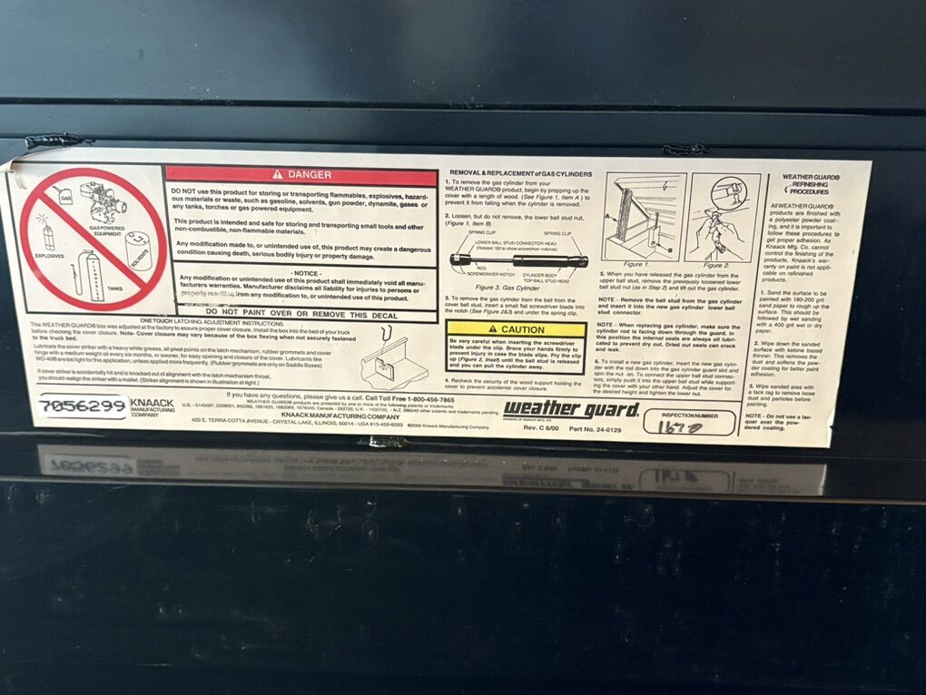 This tool box does not have any dents, it does have minimal scratches showing some wear. The shocks are a little weak, It is weather guard secure. Must sell 400.00 Or Best Offer