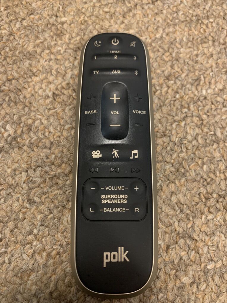 5.1 Dolby and DTS 4 HDMi inputs. No damage, some smudges. All original parts included. Manual online. Well reviewed online and in videos. Polk Pedigree of audiophile quality.