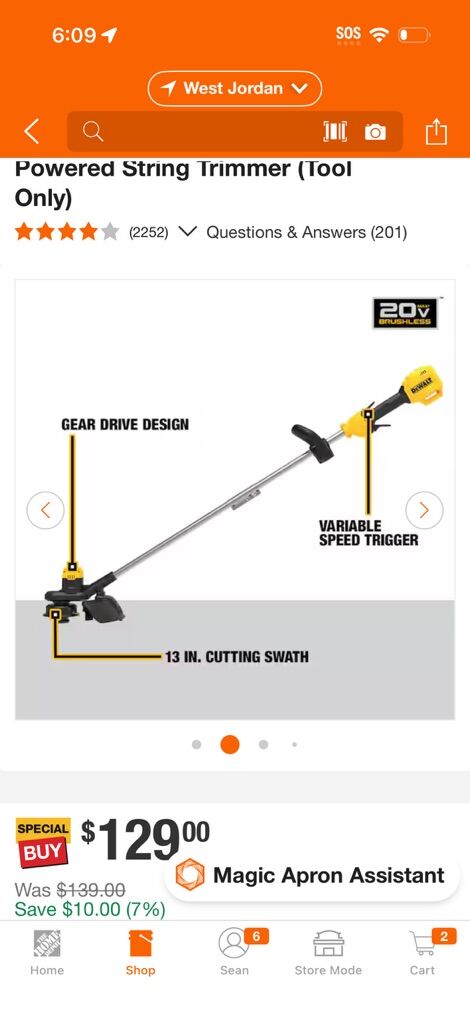 ZelleBrand new, never been used. Dewalt 20v string trimmer. Weed whacker. Model DCST925B Home Depot usually sells for $139 Tool only. No battery or charger