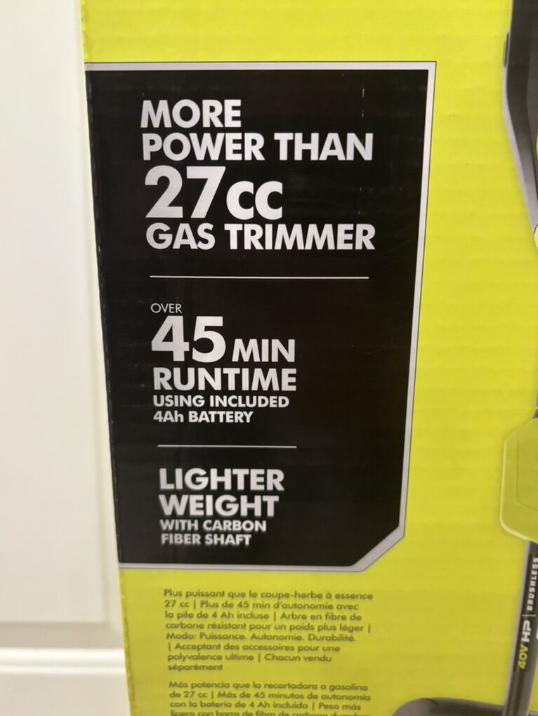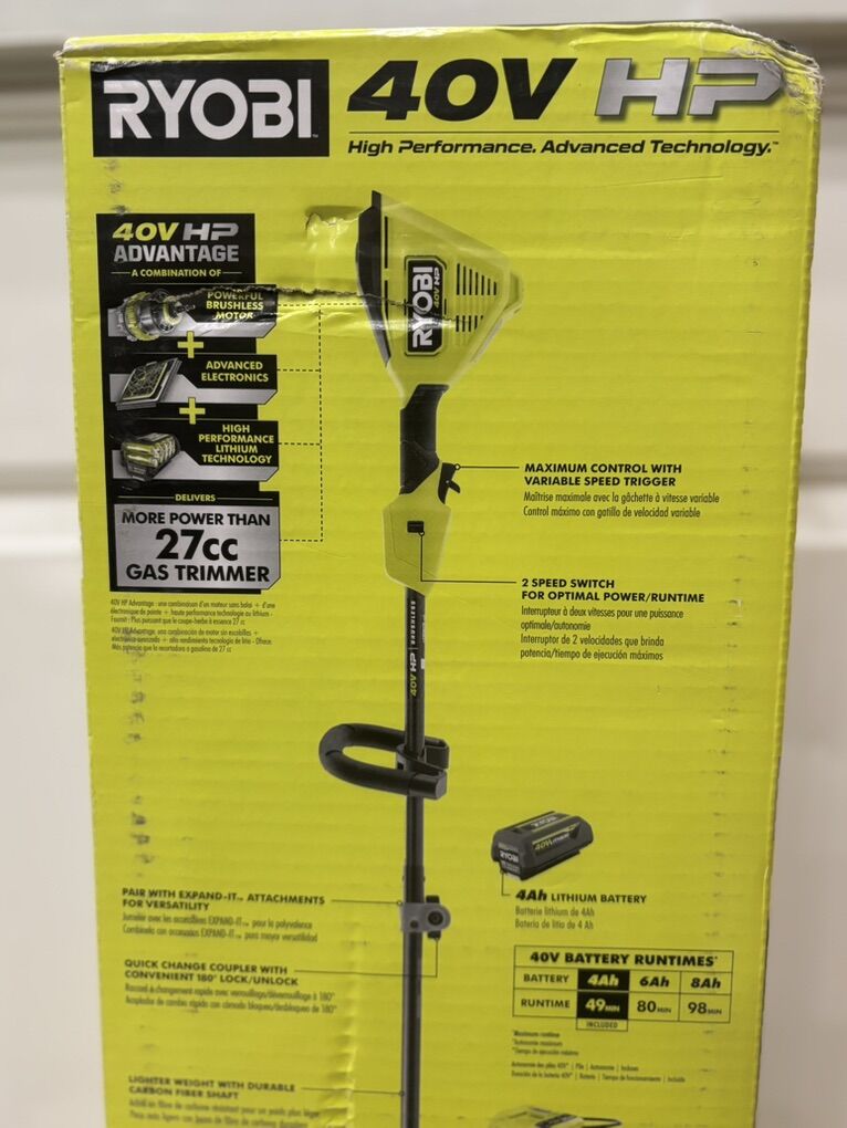 NEW UNOPENED RYOBI 40V HP Brushless 16 in. Cordless Carbon Fiber Shaft Attachment Capable String Trimmer with 4.0 Ah Battery and Charger