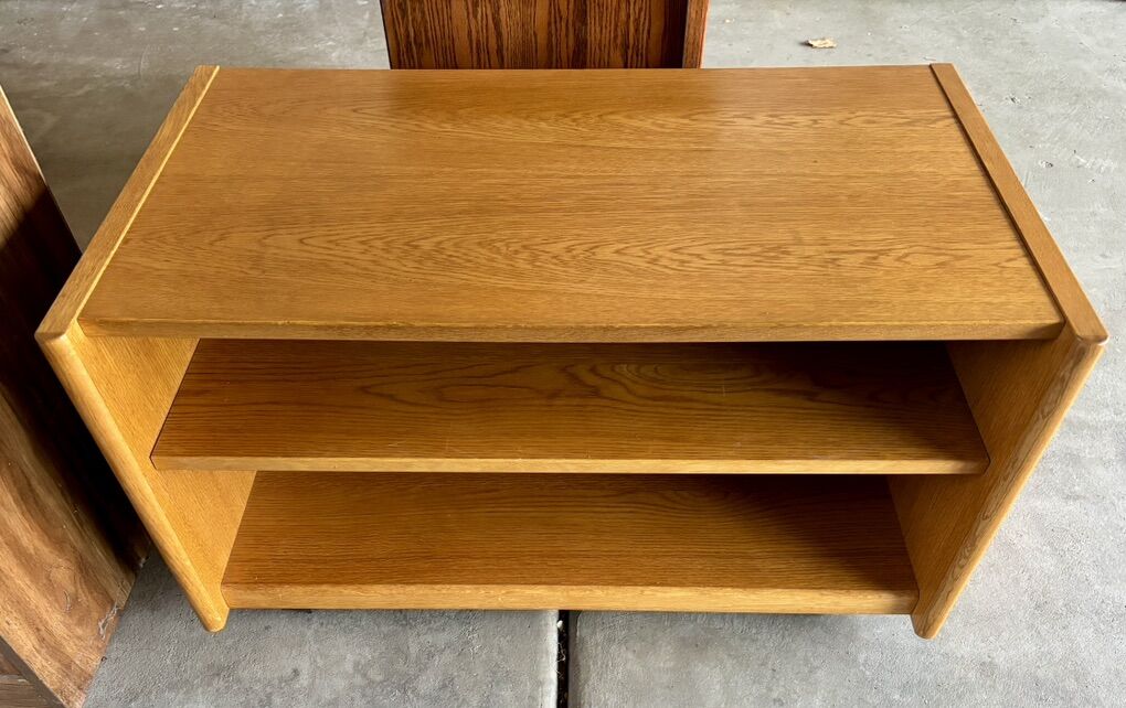 Vintage Solid Oak Entertainment Cart with pullout shelf for easy access. Sturdy casters for ease of mobility. 33 1/2 “ wide x 19” high x 20” deep. Excellent condition,