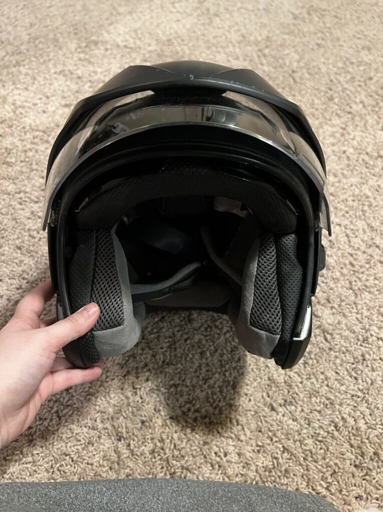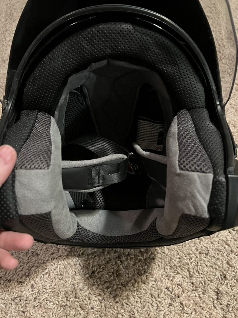 ApplePayLarge bell motorcycle helmet with eyewear attached and Bluetooth accessibility. It’s only ever been used once and essentially still brand new. Eyewear comes down easily I was just struggling doing it while recording.