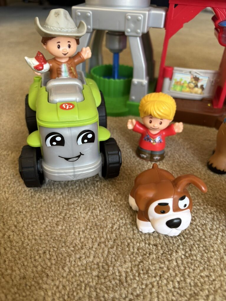 Fisher-Price Little People Farm Set. Includes fold-up barn with sounds and activities, tractor, 2 people, and 11 animals. All in very good condition. Text only. Cash or Venmo.