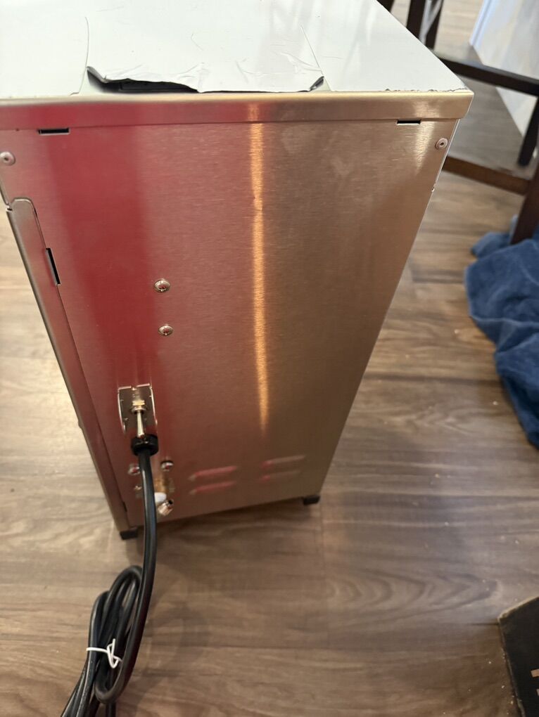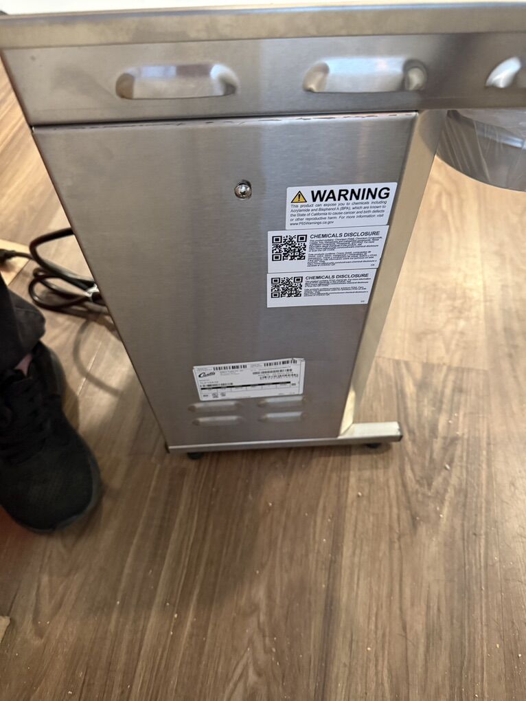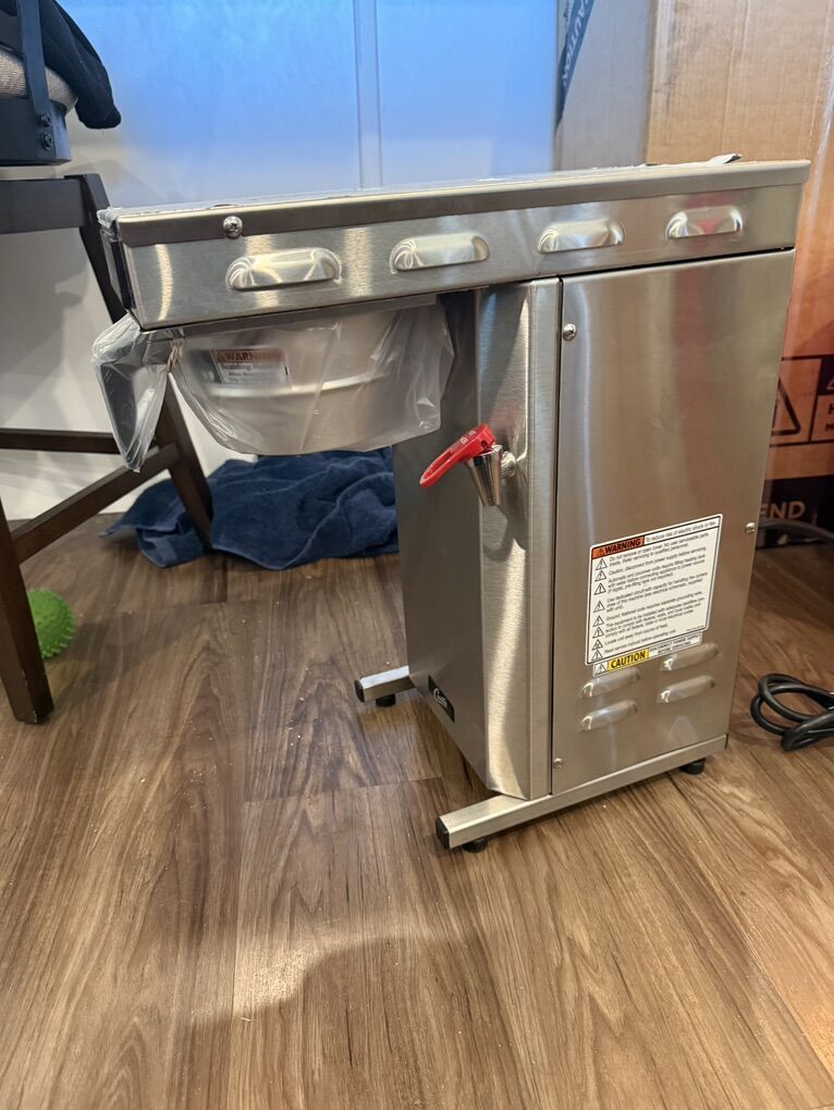Venmo19.00 H Low Profile Airpot Brewer with Stainless Steel Finish. A drive pump water delivery system provides consistent water flow, while the touch-control interface enables precise adjustments. 2 1⁄5 L brew capacity 4 1⁄2-gal. per hour brewing output 1 3⁄5-gal. tank volume. Water hose NOT included and missing a base plate.