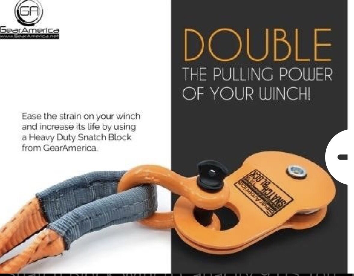 Double or triple the effective pulling power with the mechanical advantage of the snatch block while you winch. Use it with Steel Cable or Synthetic Rope from