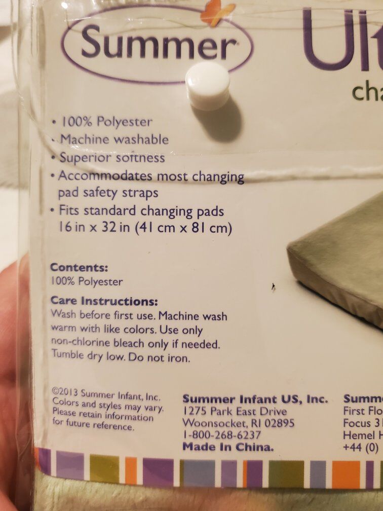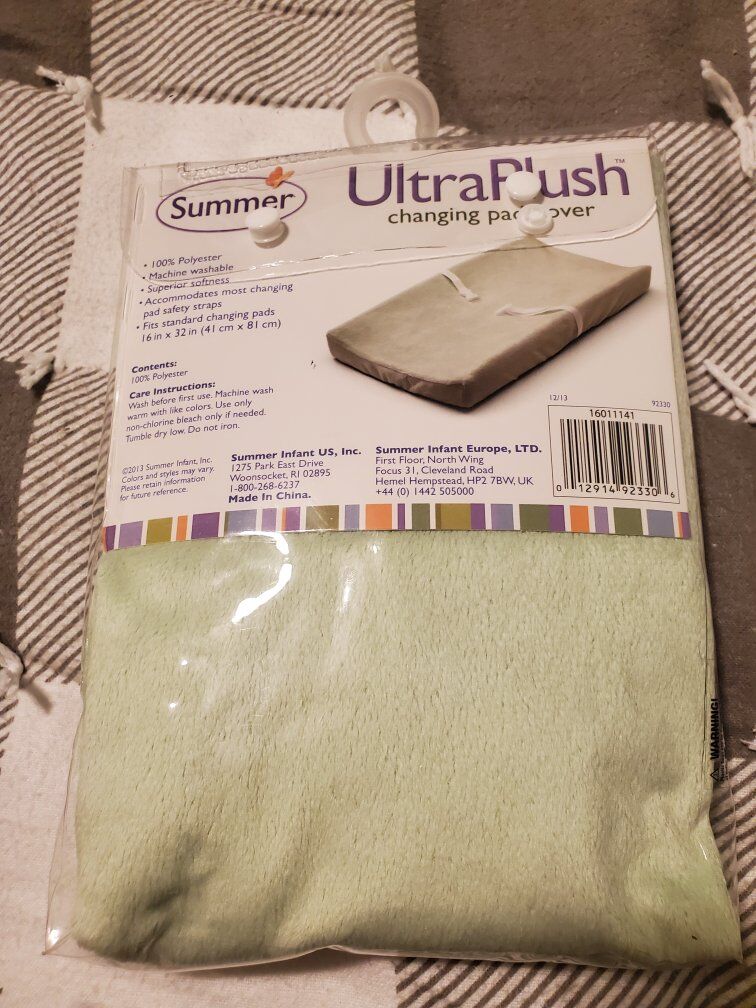 New Summer Infant Ultra Plush changing pad cover. 100% Polyester Made from super-soft velboa fabric Fits most standard changing pads up to 16 in x 32 in (41 cm x 81 cm) Machine washable and stain resistant Features an elastic bottom for a snug fit and buckle strap holes for safety straps
