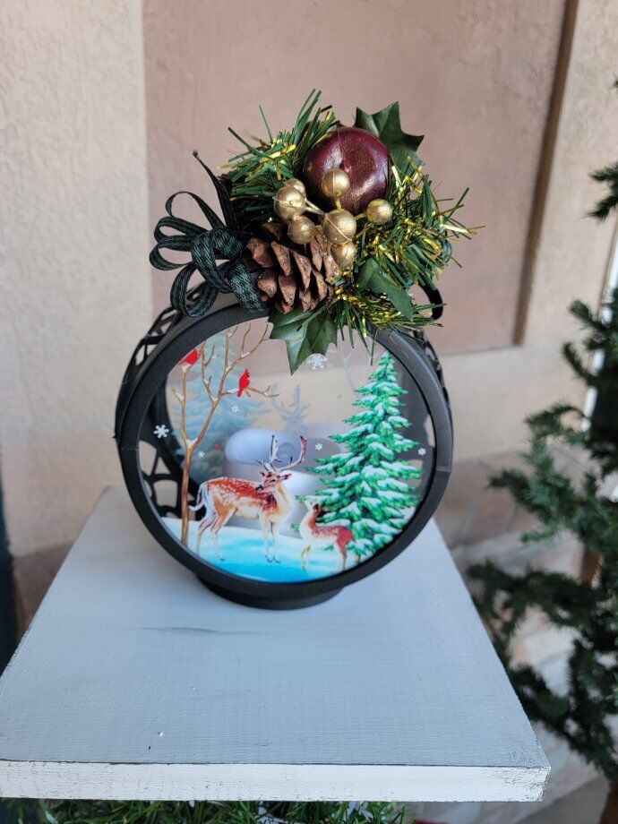 What's included: • Solid wood post construction with exterior black/white painted finish • Cast iron decorative hook (Vintage Style) • Holiday/Seasonal Sign or Wreath • Lighted Lantern Topper/Fixture- Batteries Included • Decorative bows and garland (Bows may be different than pictured) • Ready to display right now