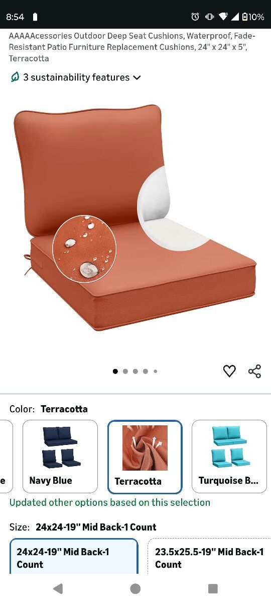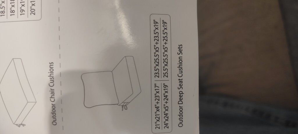 VenmoSeat cushion is 24x24. Back cushion is 27x22 which isn't an option. The pillow will make it shorter though so I'm thinking the back cushion will go to 24x19.