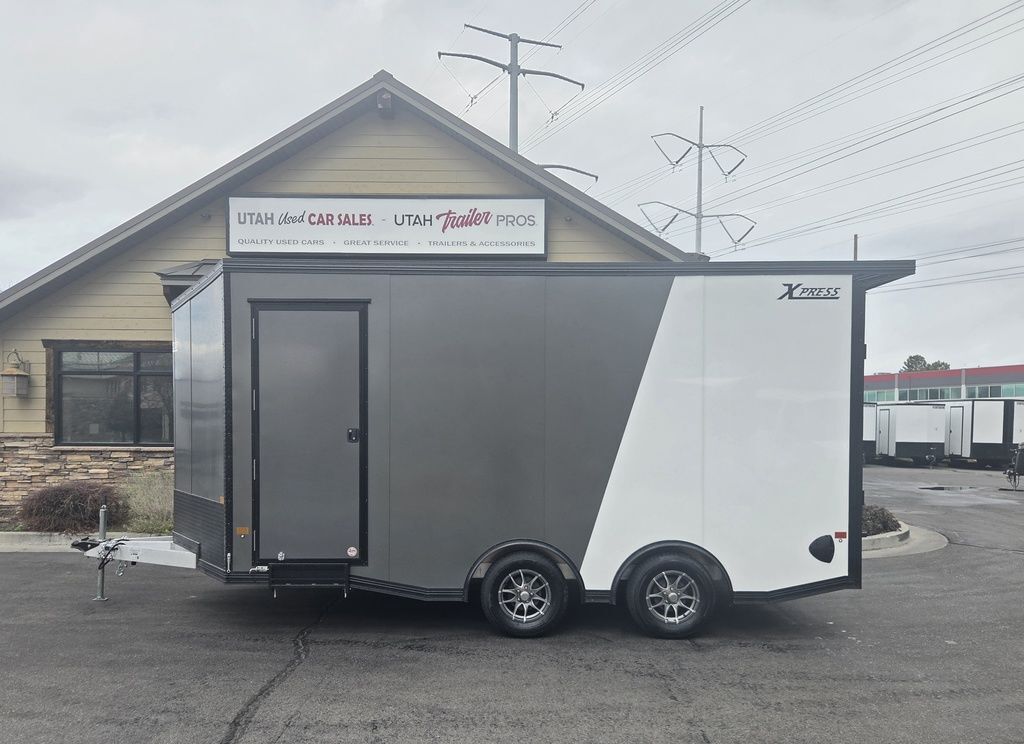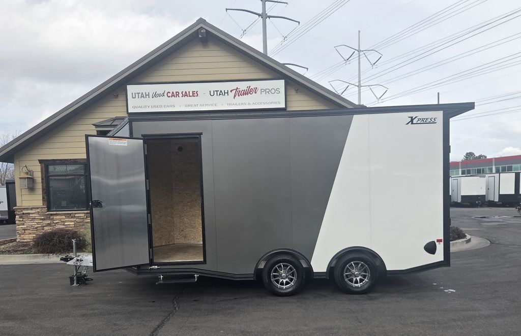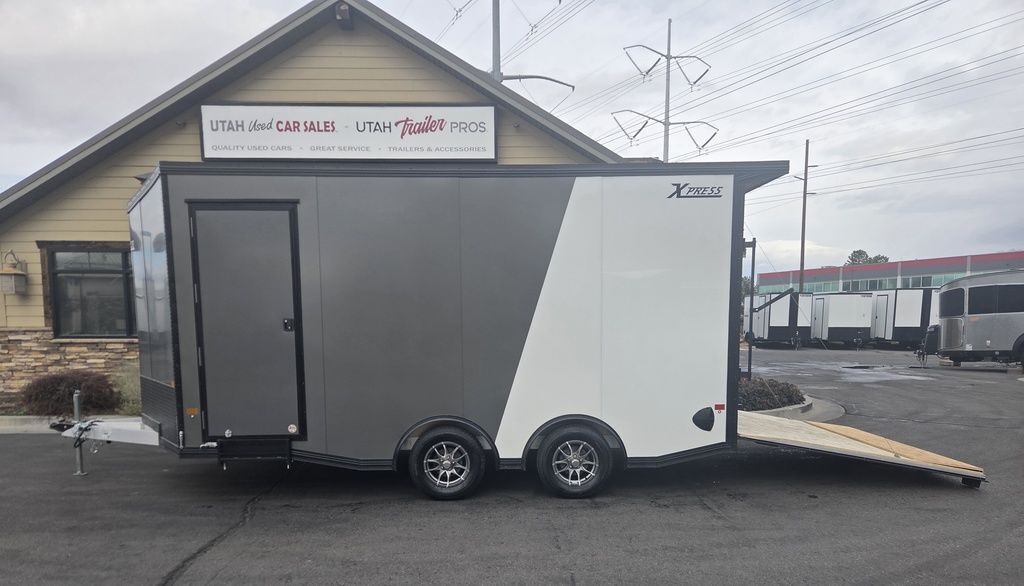 LIMITED TIME $175 A MONTH WITH ZERO DOWN WITH OUR SPECIAL LOCAL CREDIT UNION PARTNER!!! NO PRE-PAYMENT PENALTIES!!! .080 ALL ALUMINUM EXTERIOR SKIN!!! 8.5x16 Xpress UTV Pkg XTRA TALL!!! 84 Inch Rear Entry with 87 inches of Interior Height!!! 16 Foot Long Box (Rectangular Portion) with a 3 Foot Nose!! TONS OF EXTRA'S!!! Keyed Alike Ramp Door Hasps/Locks and Side Access Door!! Manual Roof Vent! 14x14 Fuel Passthrough Re-Fuel Door! 4 YEAR FACTORY WARRANTY!!! UTV Pkg includes extra height, Torsion Axles, Spread Axles, Upgraded Aluminum Mag Wheels, V-Front, 36" Sloped Design, (2) Rows of Slide Track w/ (4) Sliding D-Rings, Starter Flap, 4 Heavy Duty Ramp Bumpers, and more!!! You need to see the workmanship in person, these are not your standard cargo trailers, these are the TOP OF THE LINE!! PREMIUM!!! All Aluminum Enclosed Cargo with UTV Pkg!!! REAR CANOPY WITH RECESSED LIGHTING!!! Super heavy duty Spare Tire Mount, no breakage here!!! TB053559
