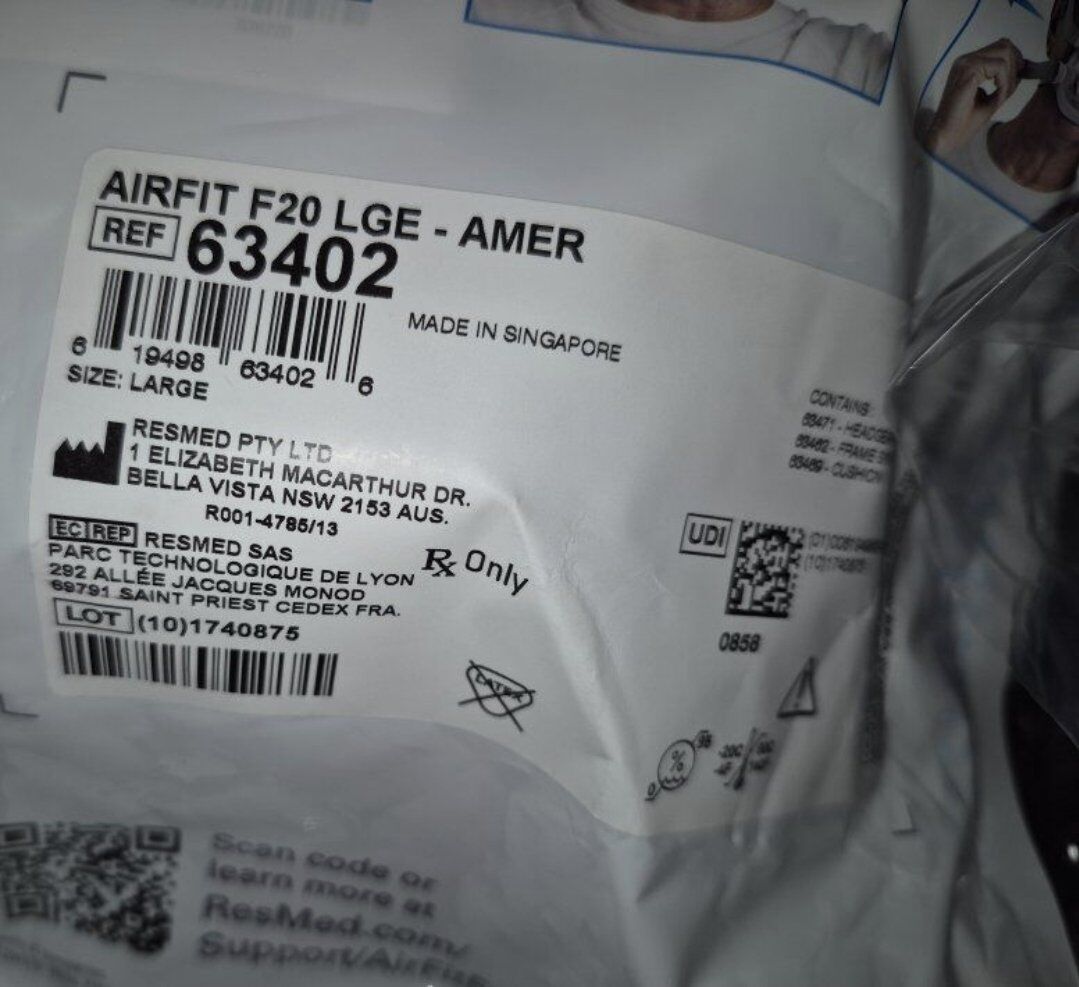 VenmoAirFit F20 Full Face Mask L 63402 Complete System size Large