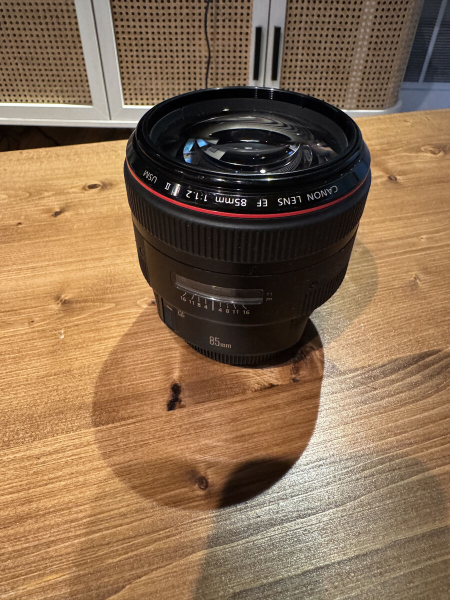 VenmoCanon EF 85mm f/1.2L II lens for sale. Works perfectly.Glass is clean. Autofocus and aperture are functioning normally. Includes front and rear caps and lens hood.