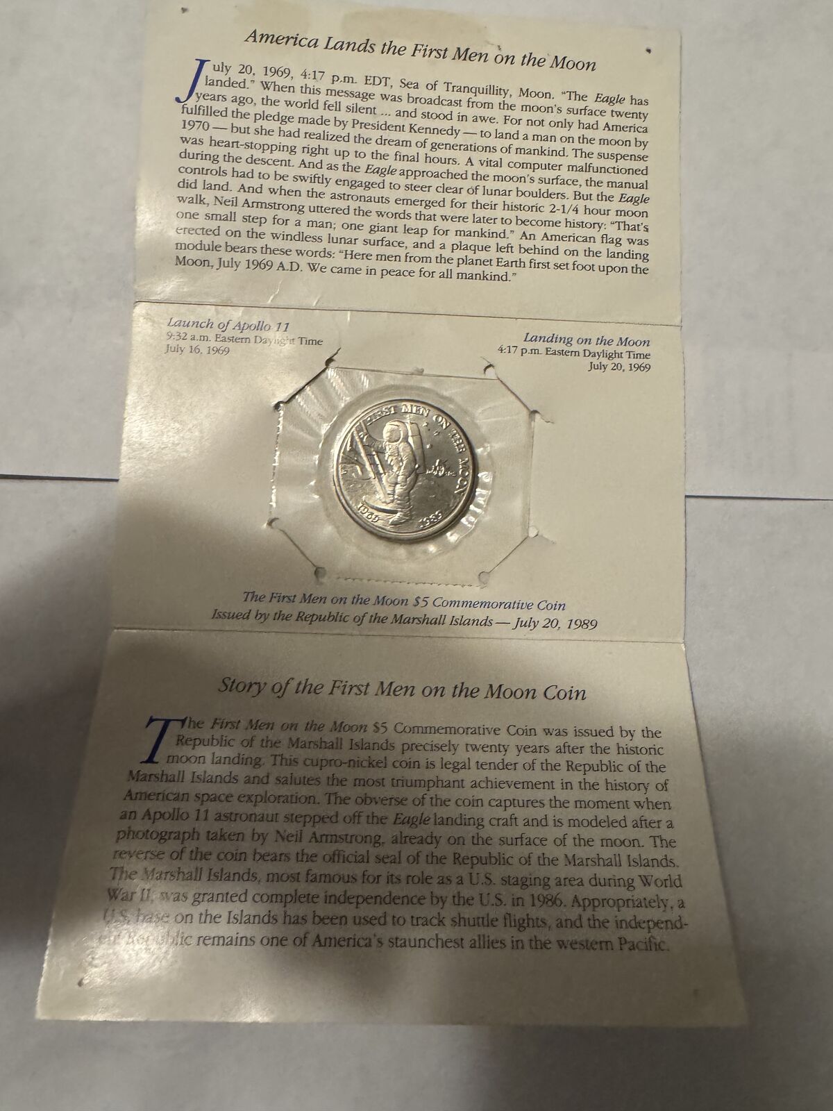 Republic of the marshall islands first men on the moon $5 commemorative coin - 1989 - $10