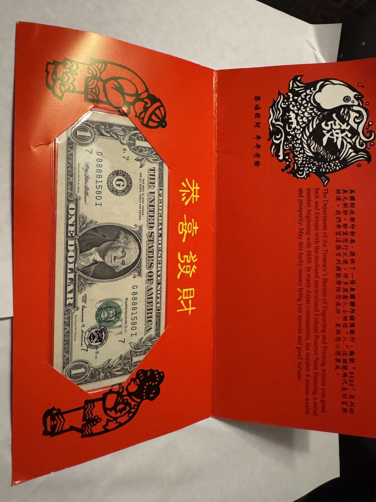 $1 Lucky Money Note (1999) - Leading With 8888 Asking $10