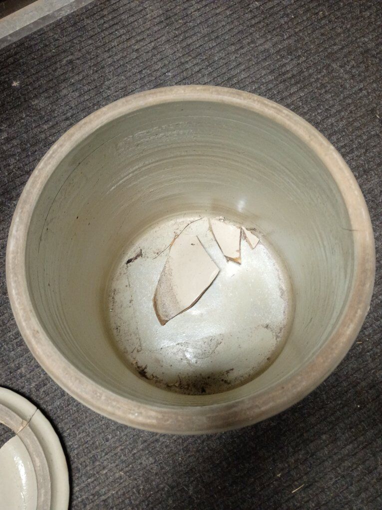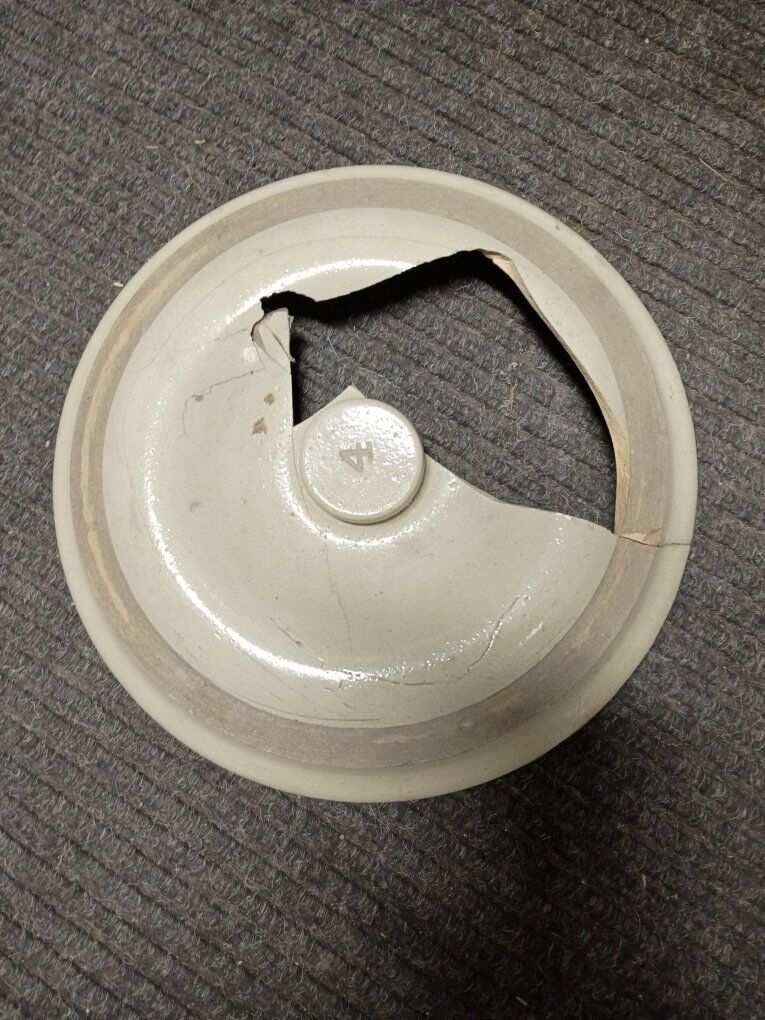 VenmoWestern Pottery 4 gallon jug. Besides the broken lid, this one is in pretty good shape. Make me an offer.