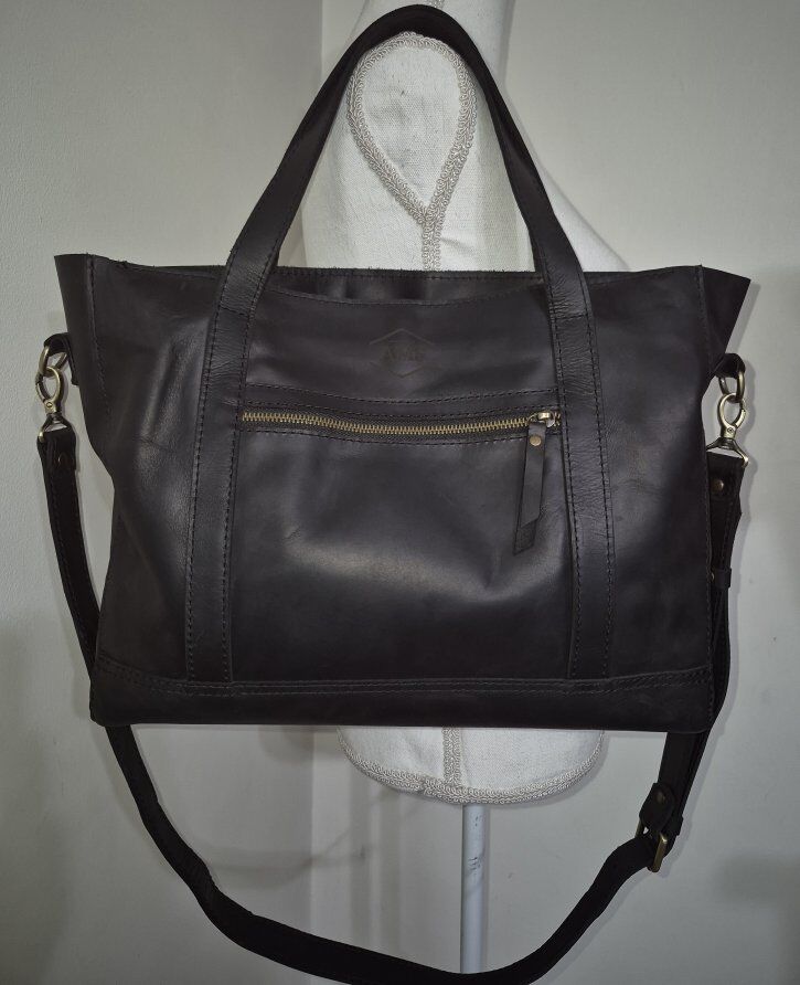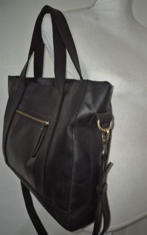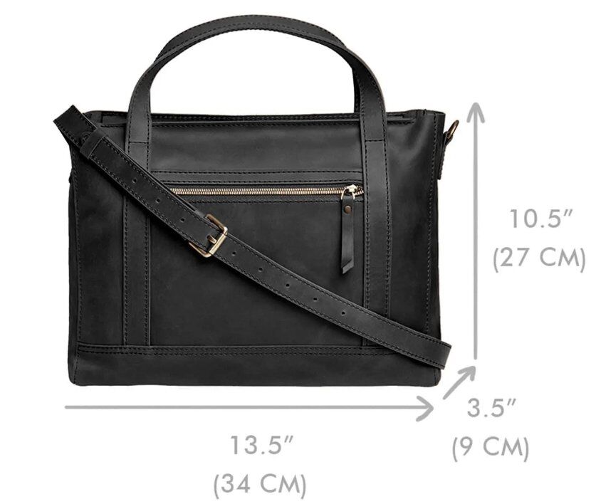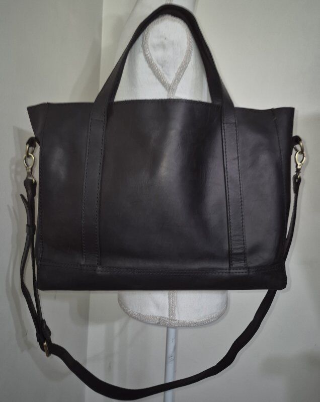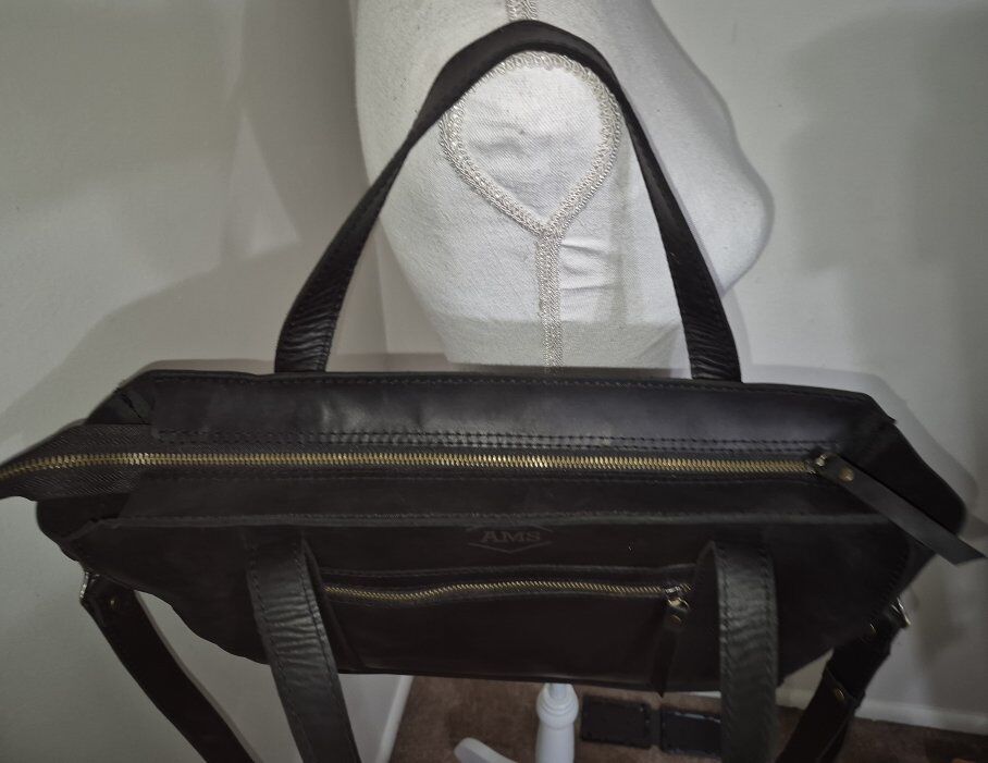 Venmo"AMS" Monogram Embossed Work Tote Bag 10.5x13.5x3.5 inches New! Black hue, premium leather, water and stain resistant, oiled finish, antiqued-brass hardware, detachable and adjustable crossbody strap, top handles, front exterior zip pocket, top zip closure, two interior slide pockets.