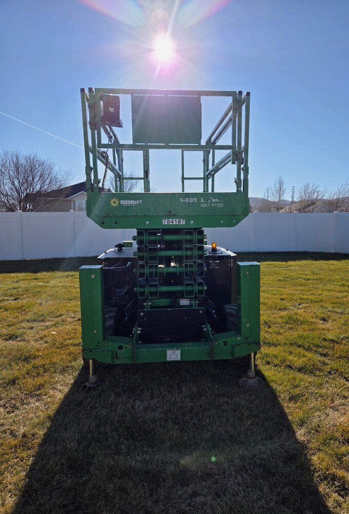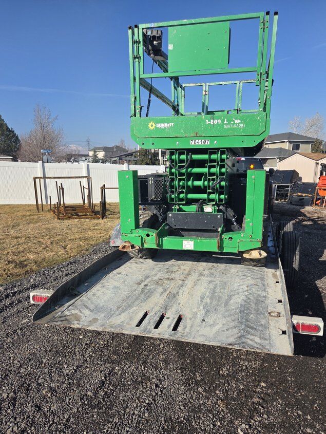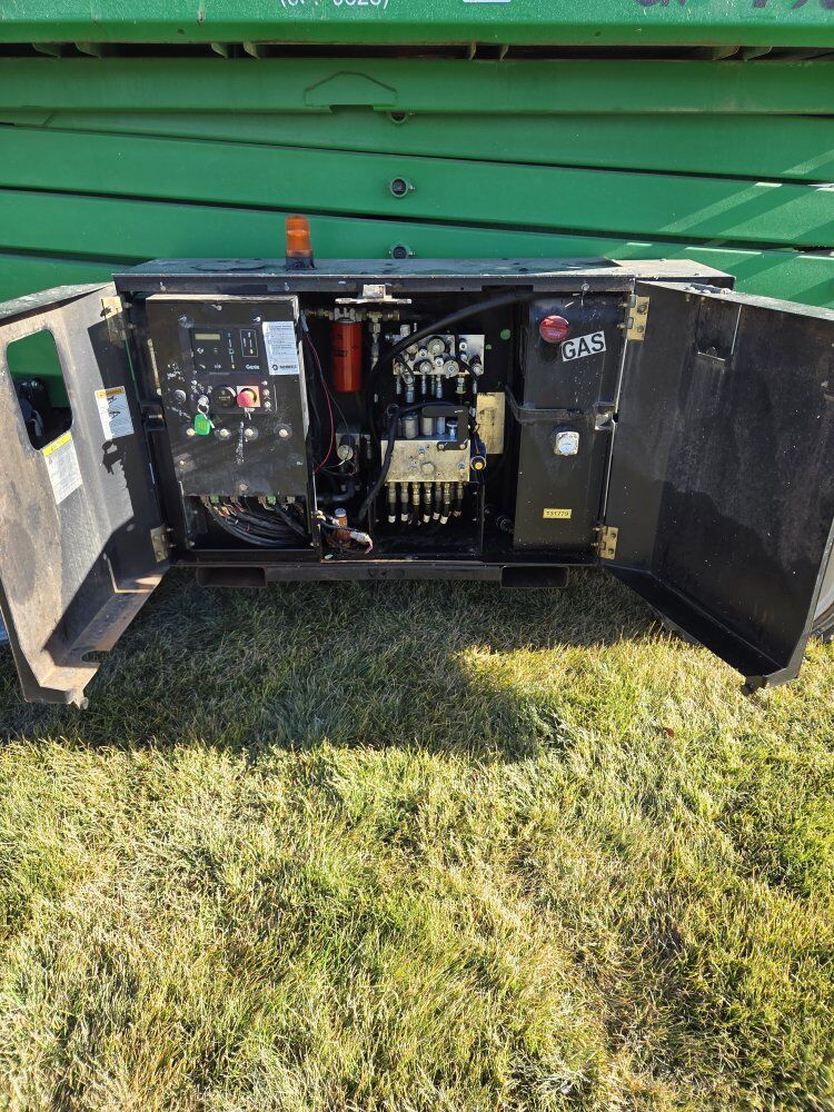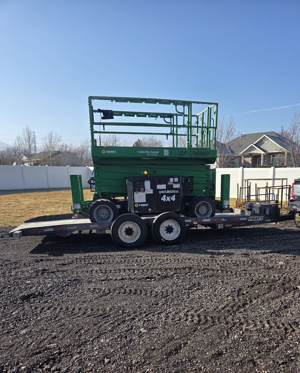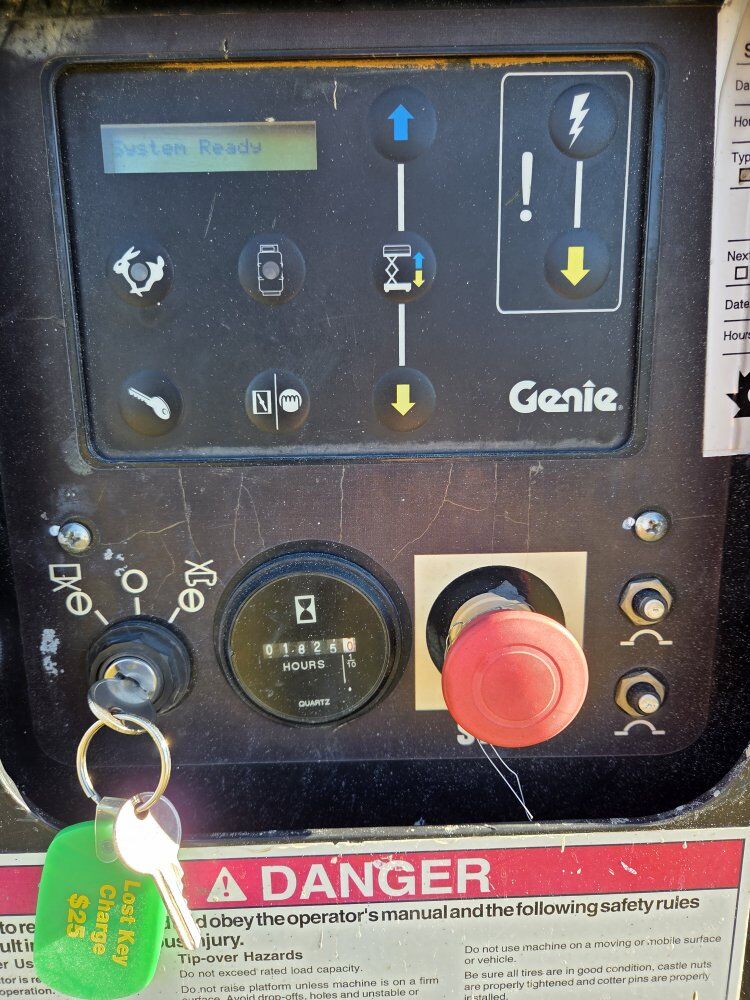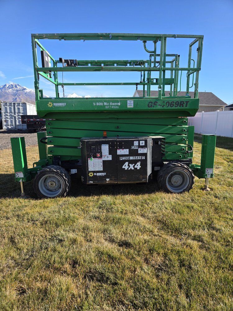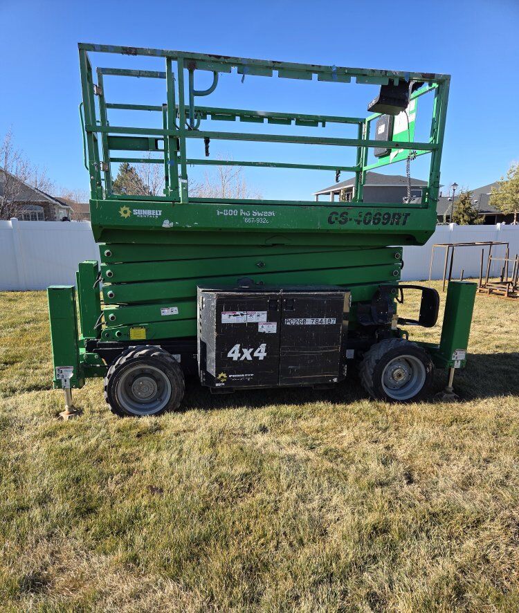 2016 Genie GS-4069RT Gasoline/Propain Scissor Lift with 1825 hours. 40ft max platform height, 46ft max working height, 800lbs lifting capacity, 4x4, outriggers, power to platform, platform extention, 3 cylinder kobota motor. total weight 11,000 lbs.