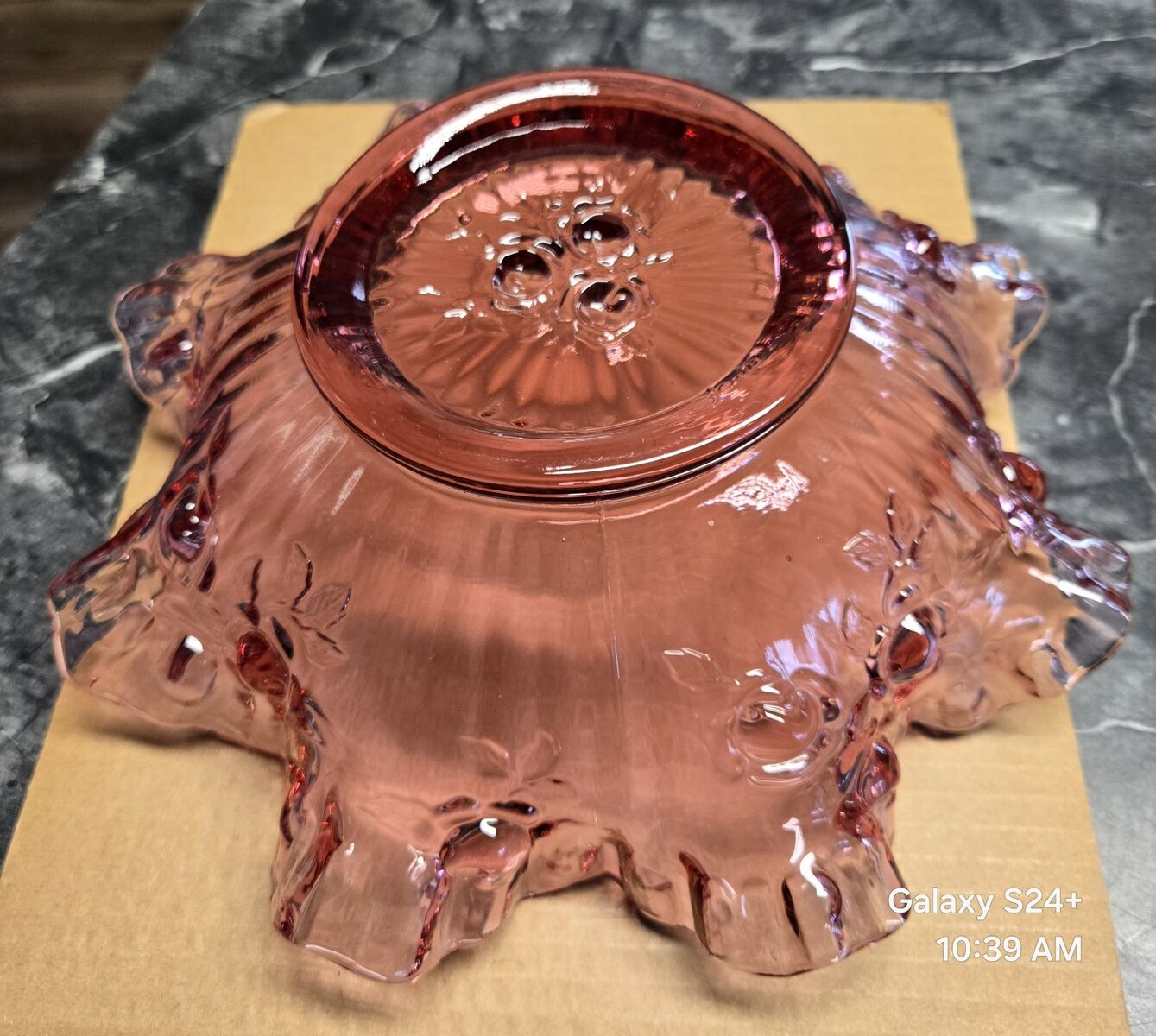 PayPalThis is a Vintage Fenton Pink Cranberry Cabbage Rose Bowl with Ruffled Edge. 10 inch by 3 3/8 inches. A beautiful piece. NO cracks or chips. Picked up in Taylorsville. Thank you.