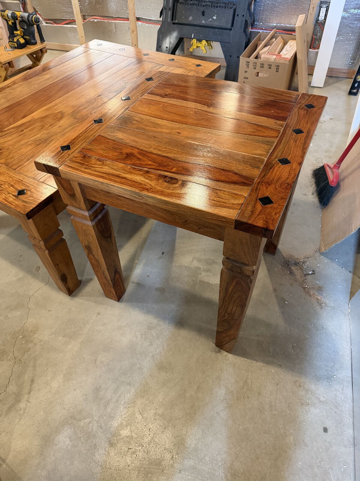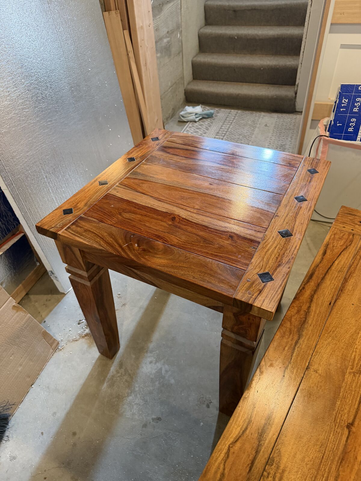 ApplePaySolid rosewood tables for sale. Very sturdy with beautiful natural color variation throughout. Neither are perfect, but still in very good condition. Coffee table measures 48 1/4 x 32 and is 19 1/4" tall. There is a crack that has been there since we purchased the table as new. Side table measures 24 x 24 and is 26" tall. A few small blemishes in the top but not very noticeable.