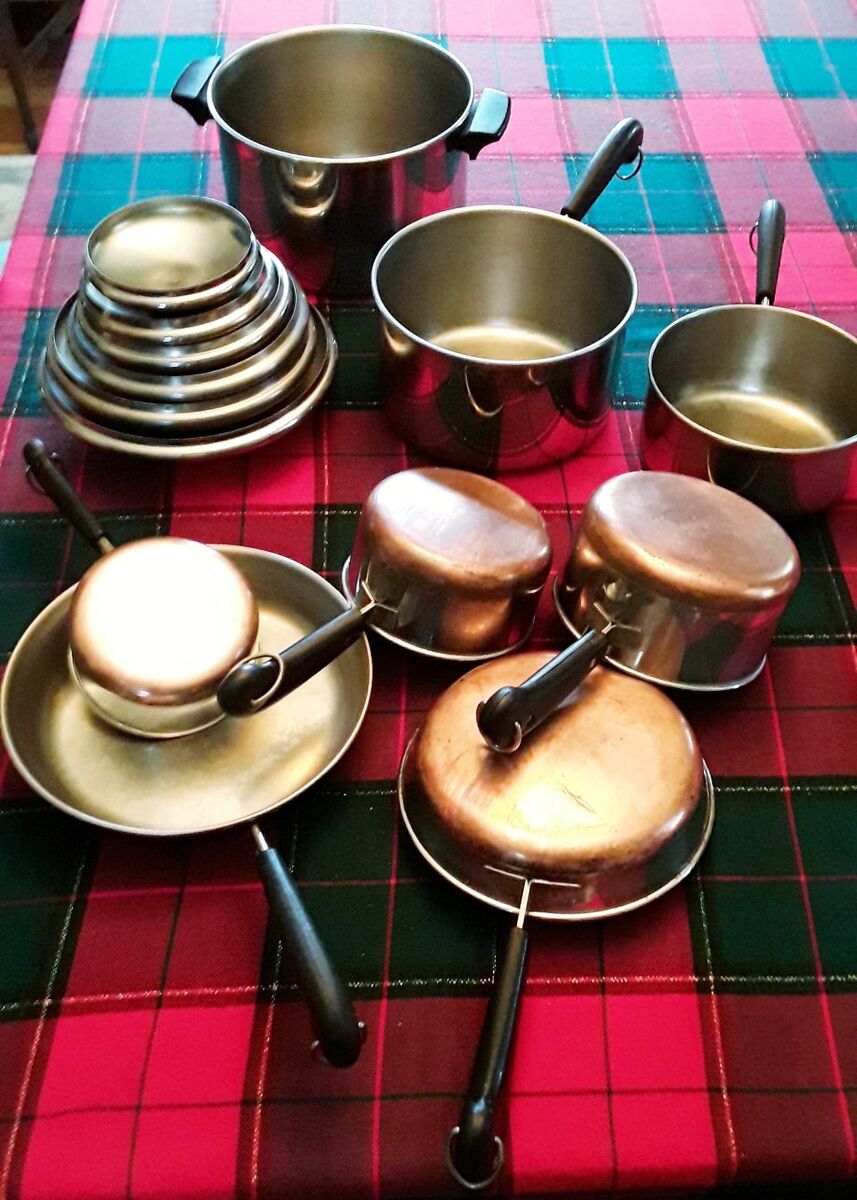 Several of the pieces have the old vintage copper bottoms.