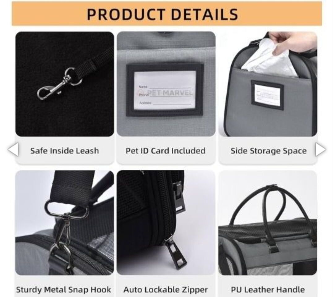 PayPalNEW Pet Marvel soft sided cat/small pet carrier. Up to 15 lbs, ariline approved, mesh pet travel bag. Brethable and bit resistant fabric. Includes removable washable mat and shoulder strap. Retail $28. Draper. All sales final, no returns.