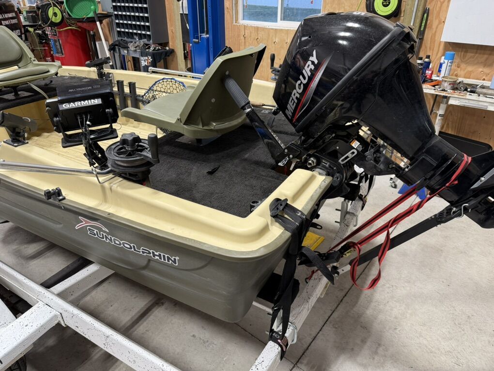 Selling my sun dolphin pro 120 Includes- Mercury 9.9 four stroke with fuel tank Trailer 3 down riggers one is a spare, 4 pole holders Garmin vivid 7 fish finder Bimini top Down rigger weights Please text 801-706-0493 $3,800 OBO