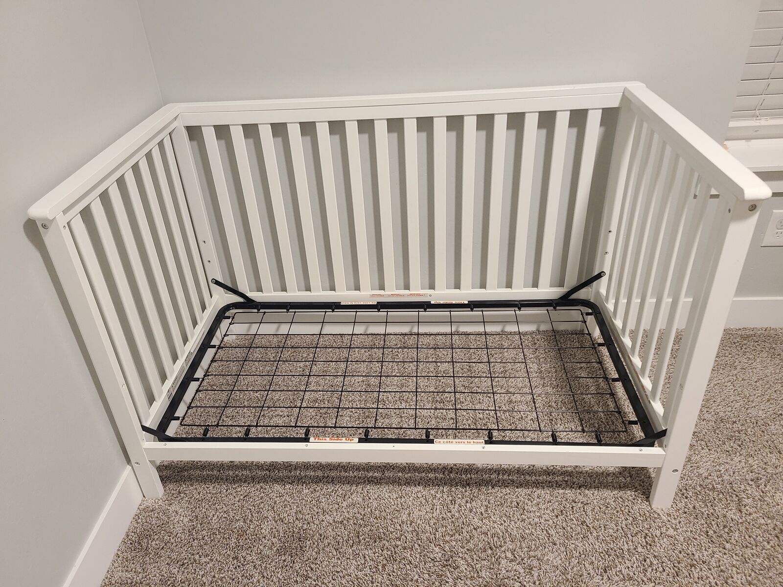 ZelleBundling this height-adjustable Stork Craft Hillcrest convertible crib/bed with the mattress. We also have waterproof matress protectors (×3), and floral fitted sheets (×4). Let me know if you'd like those as well, no additional cost.