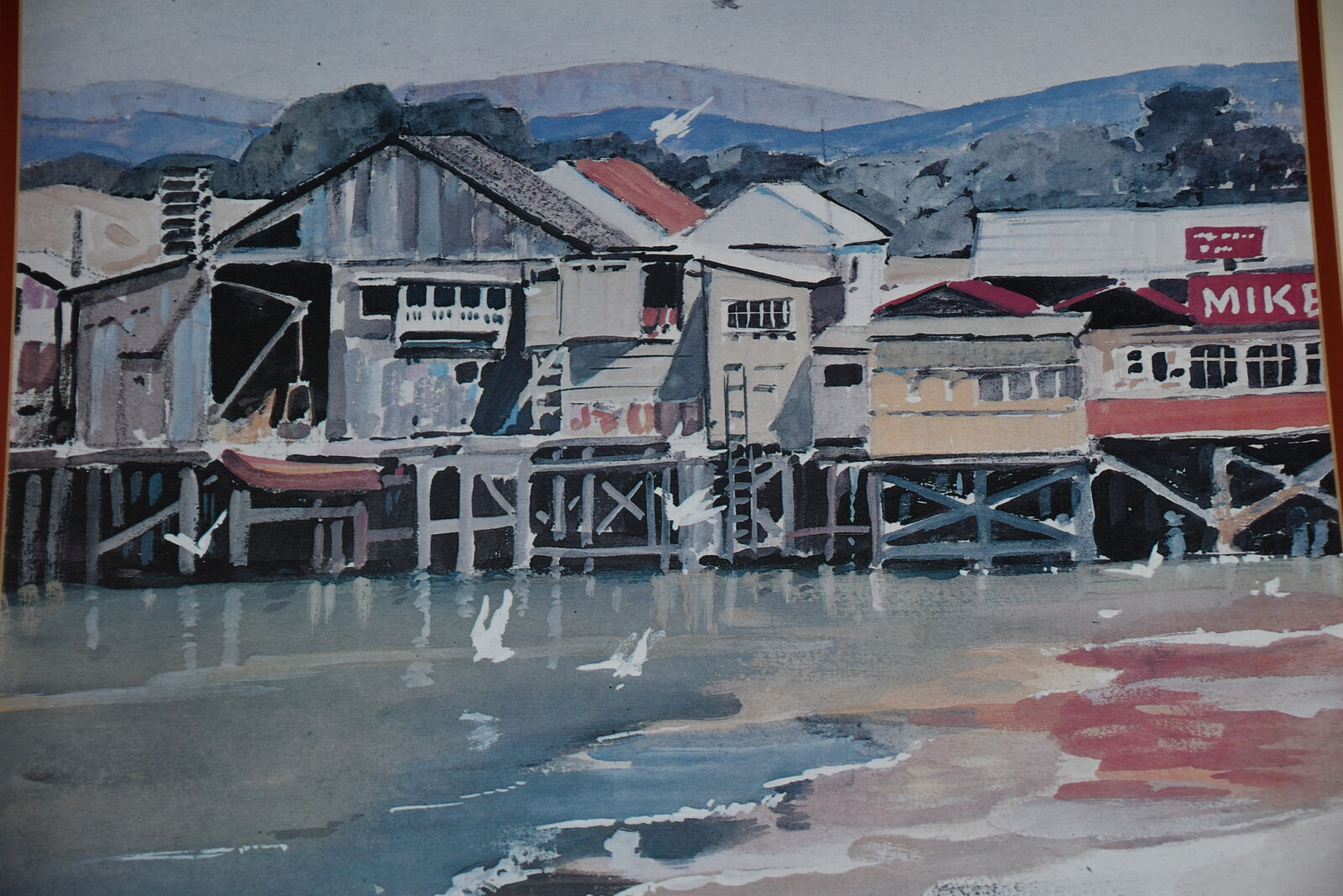 This "MONTEREY" BOAT DOCK PICTURE is about 19" x 21" FRAMED. It is a WATERCOLOR PRINT. Our home is smoke free. Questions??? Please ask. We are located in Plain City. Cash only please.