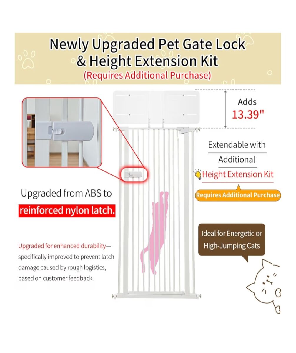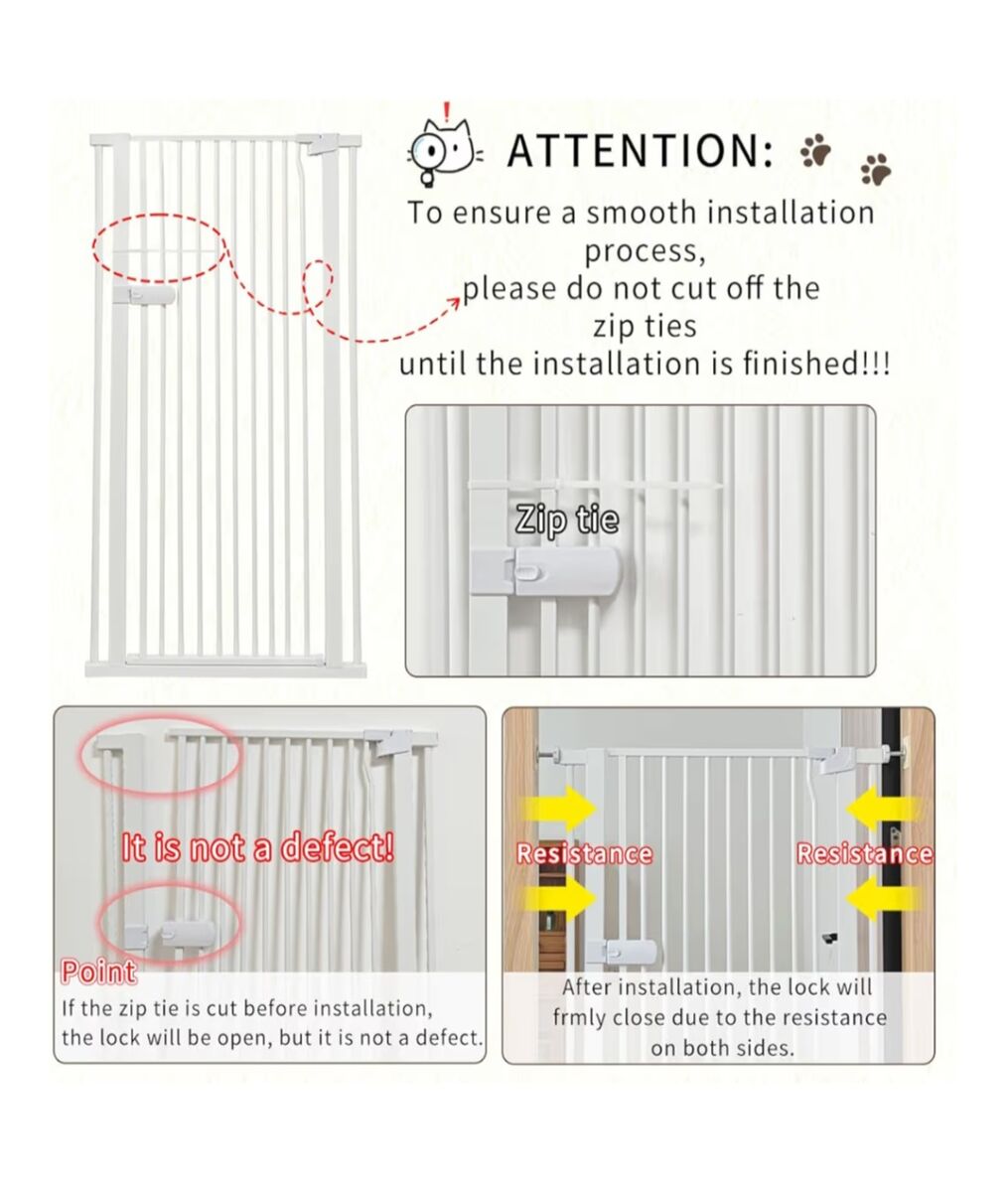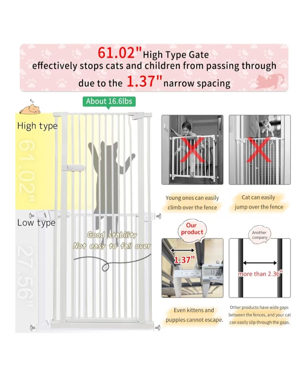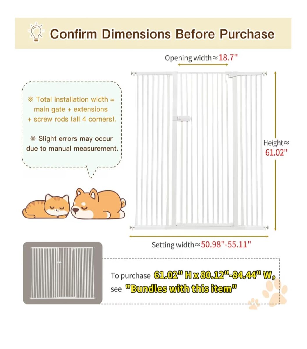 PayPalNEW Lumizone Gate 61.02" Tall 29.92-55.11"W. Pressure mounted, 1.37" gap between the bars, and the color is white. Multiple attachments included to extend the width up to 55.11". Retail $180. Draper.