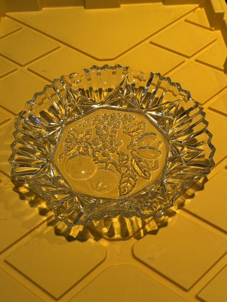 VenmoCrystal serving platter with scalloped edges and fruit embellishments; NEVER USED!