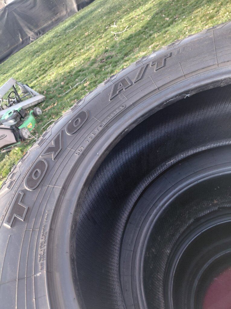 selling 4 use 285x75x18 toyo open country tires with a lot tread left on them this tires new retail round $400ea im asking $260 obo for the set of 4 DOT 2018 INTERESTED PLEASE CALL 385 306 1782 CASH ONLY SERIOUS BUYERS NO CODE