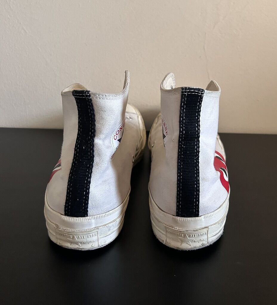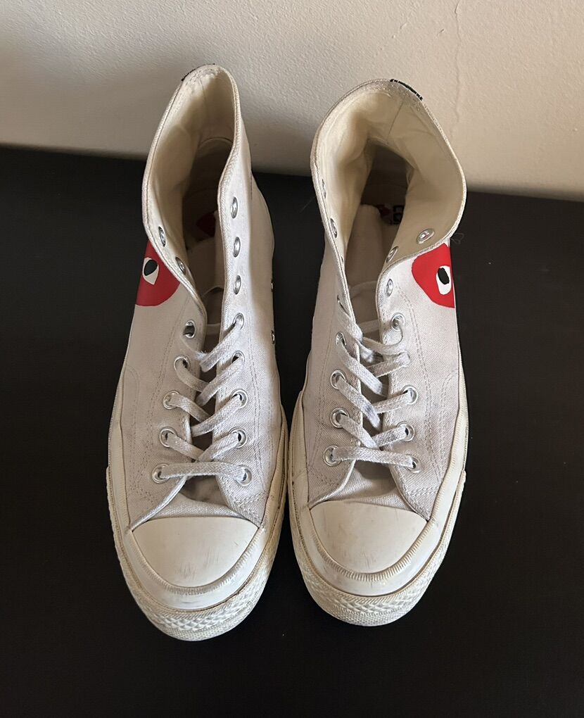 VenmoUsed pair of limited edition CDG Converse. Light scuffs here and there, but they still look good. Soles are in good condition and clean. Size 10 Men/Size 12 Women