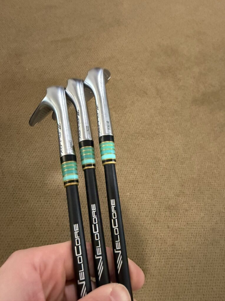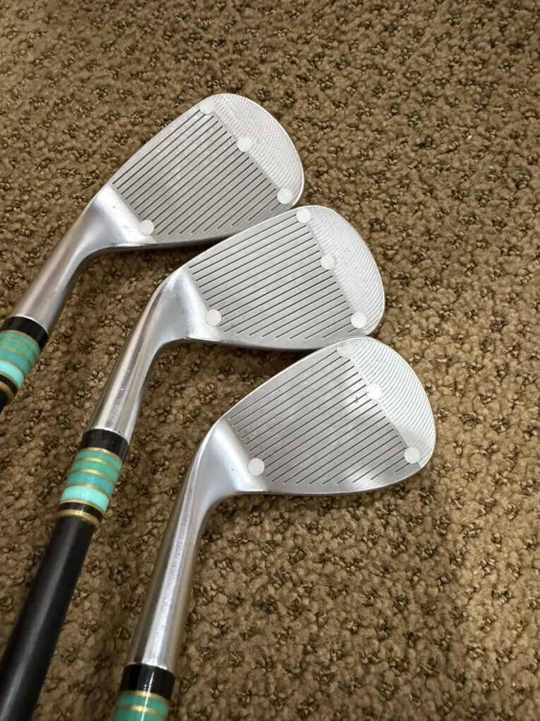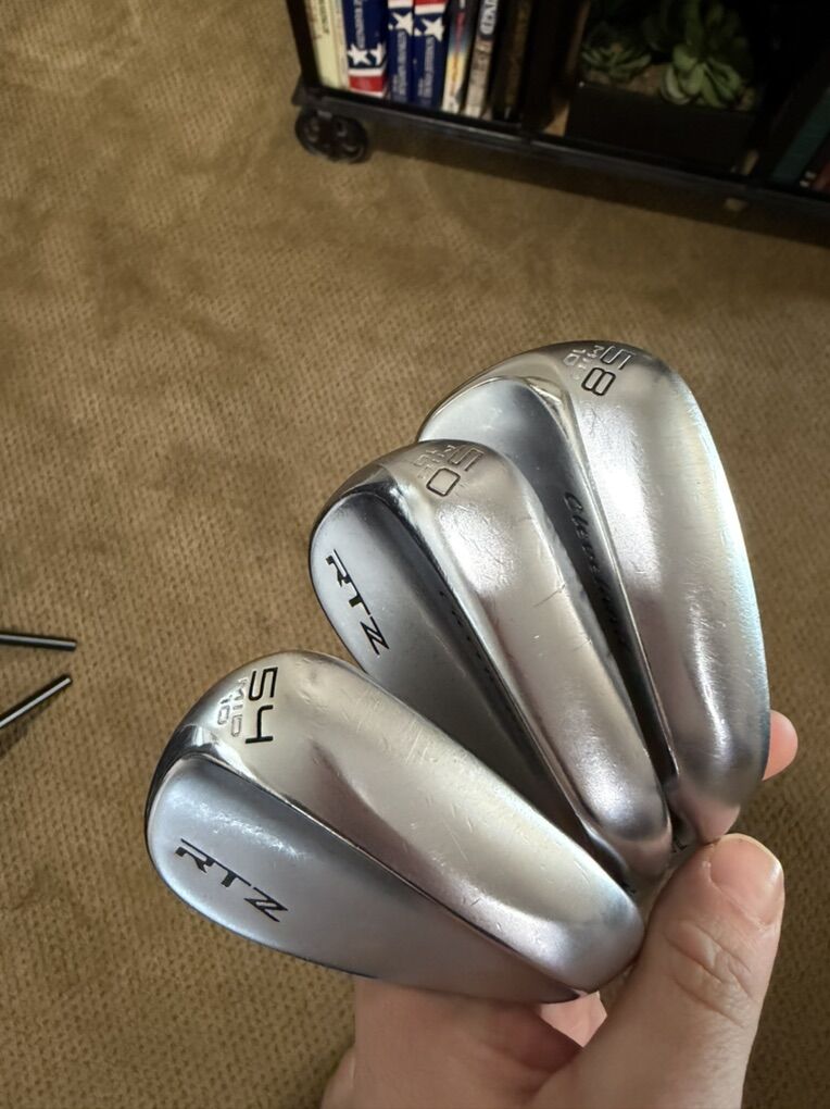Cleveland RTZ wedges with mid 10 degree bounce across all three. Super easy to hit and very accurate Same specs as irons