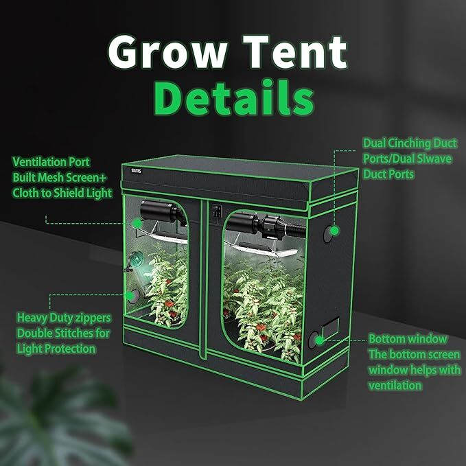 GooglePaySULIVES Grow Tent,120"x60"x80" Indoor Hydroponic Water-Resistant System with Removable Floor Tray and Observation Window, Easy Setup,600D Mylar Hydroponic Dark Room for Indoor use.