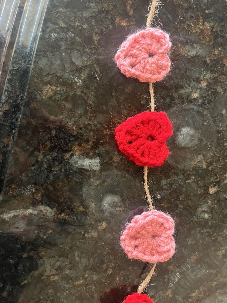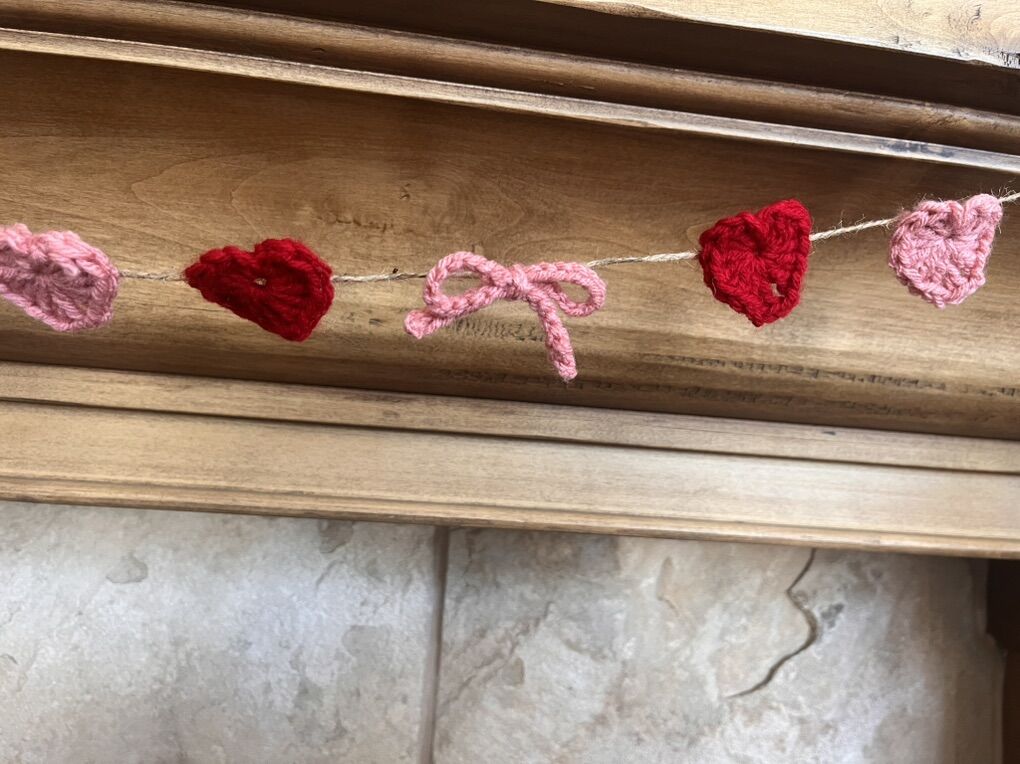 VenmoHand crocheted, valentine garland’s perfect for fireplaces, floating shelves or over beds so cute and festive for the fun Valentine season I’m a local Crochet who is saving up to serve an LDS mission and love to create fun beautiful holiday creations!
