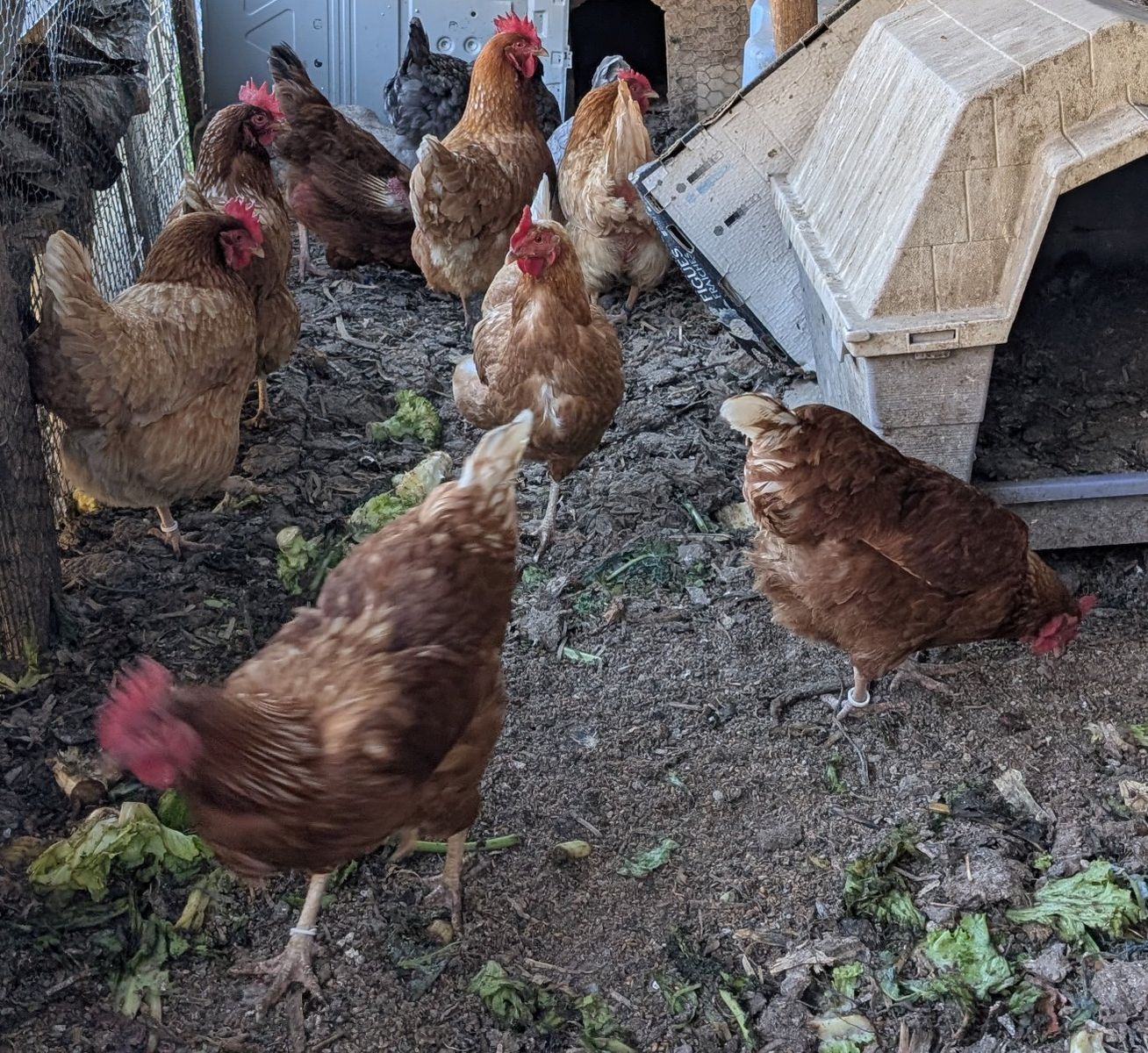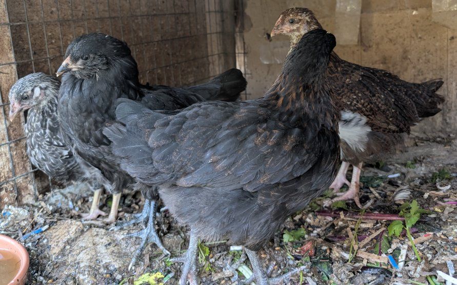2 month old pullets of various breeds: $30 per chicken.