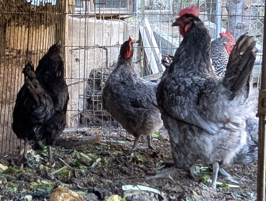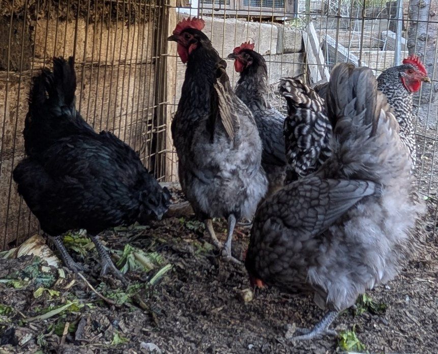 Ameraucana, Black Copper Marans, Blue Sapphire Gem, Polish, Blue Laced Red Wyandotte, Deathlayer, Old English Game hen: $50 per chicken.
