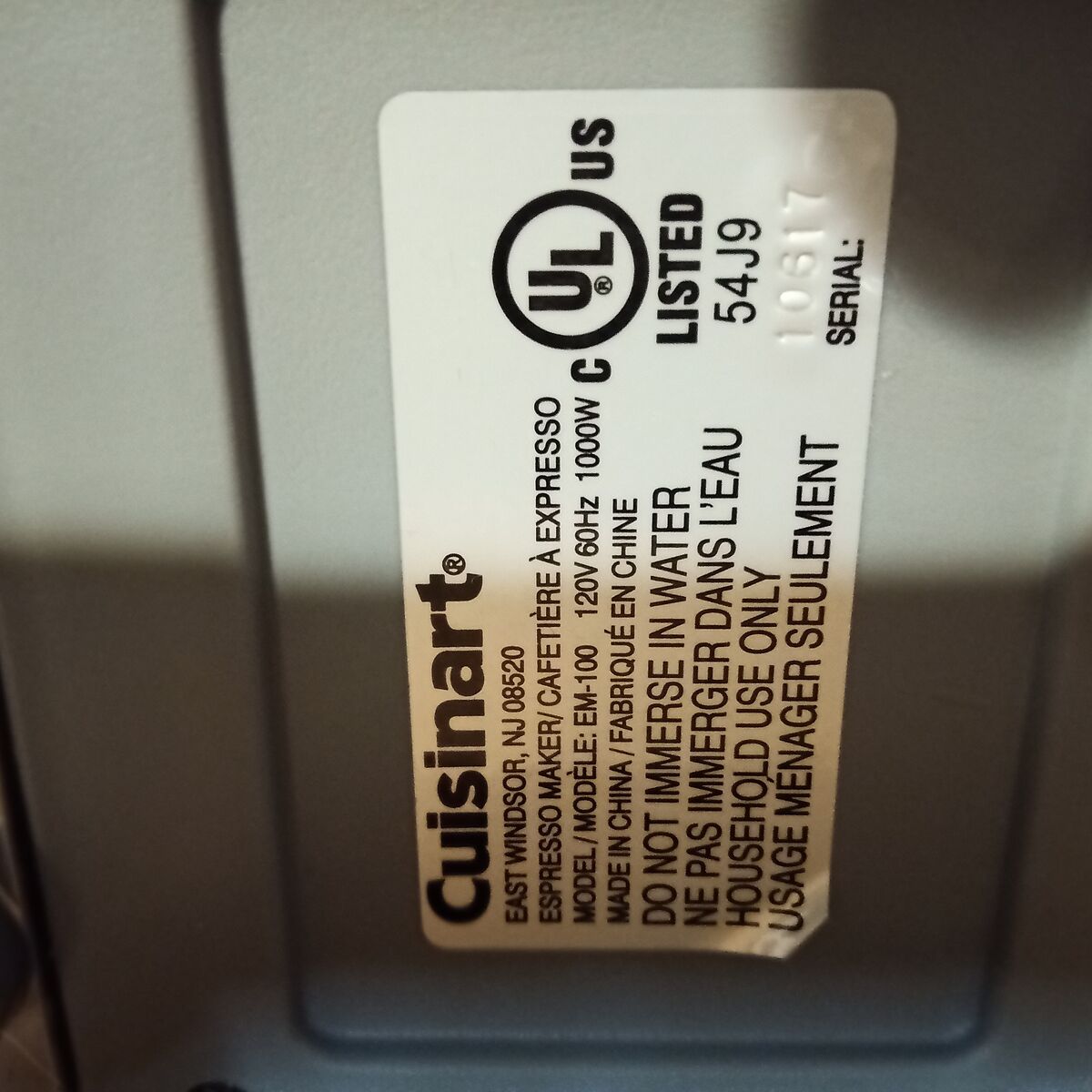 Cuisinart espresso maker, bought a few years ago, used once and then put into a closet and forgotten about. Used again this morning to check that it was still working. In excellent condition, and completely clean.