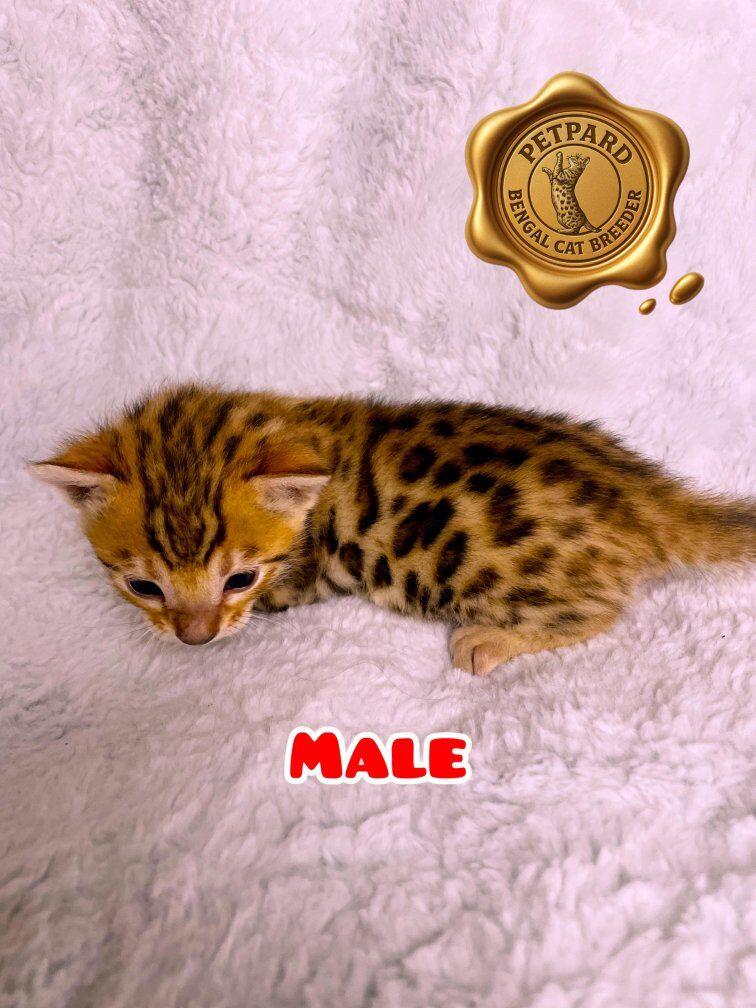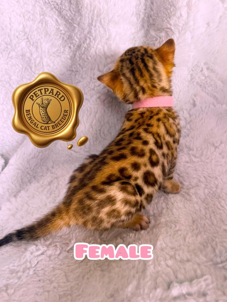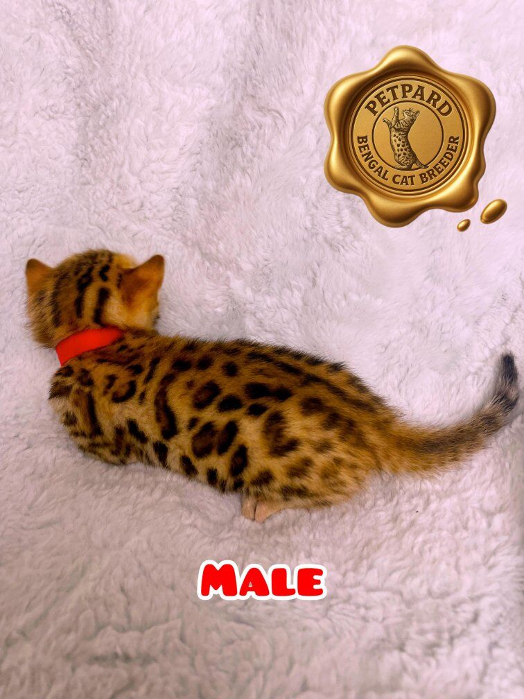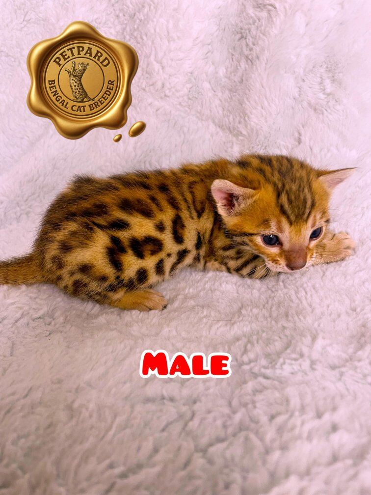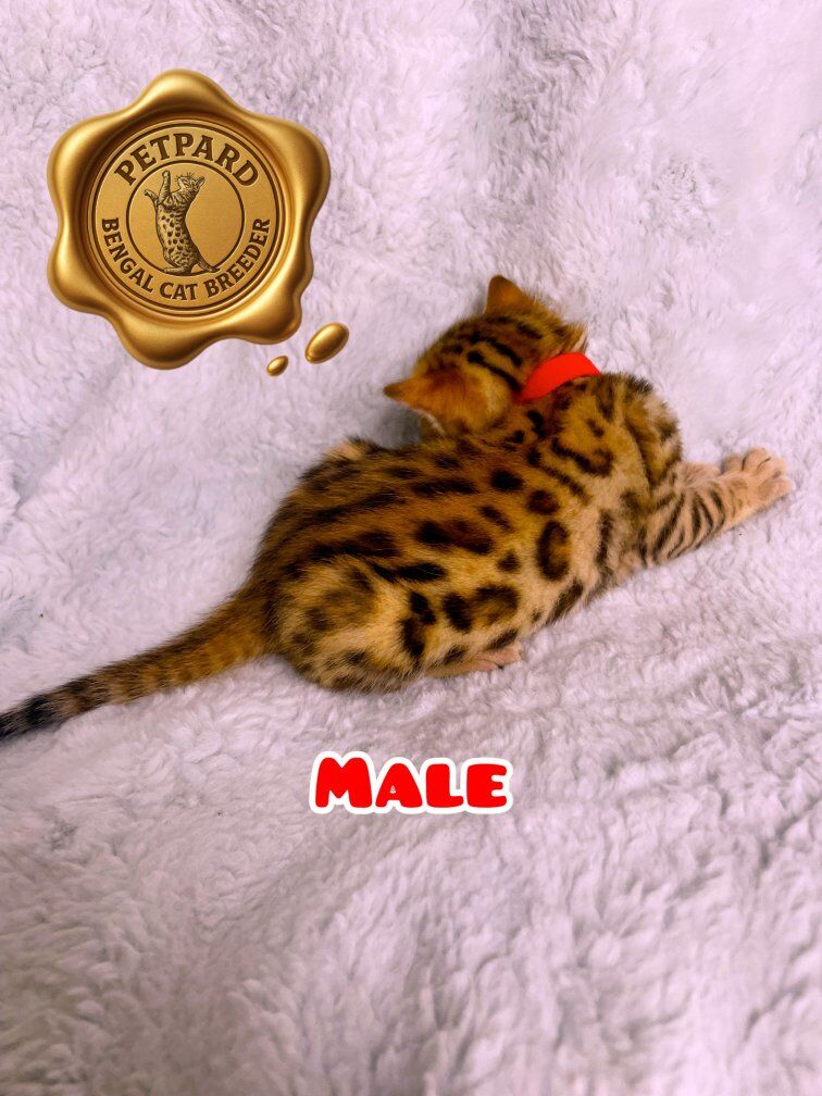 Bengal kittens are in high demand and are considered hypo allergenic with minimal shedding. They are very smart and can be a therapy pet. They can be leashed trained and can play fetch. They love to play with water. They have been well cared for and played with by my kids. They will come litter trained and ready to go. The parents are pure bred bengal cats. These kittens will be sold as pets only and will make a tremendous addition to your family. We have included some pictures of the mom and dad at the end so you can get an idea of what they might look like fully grown.