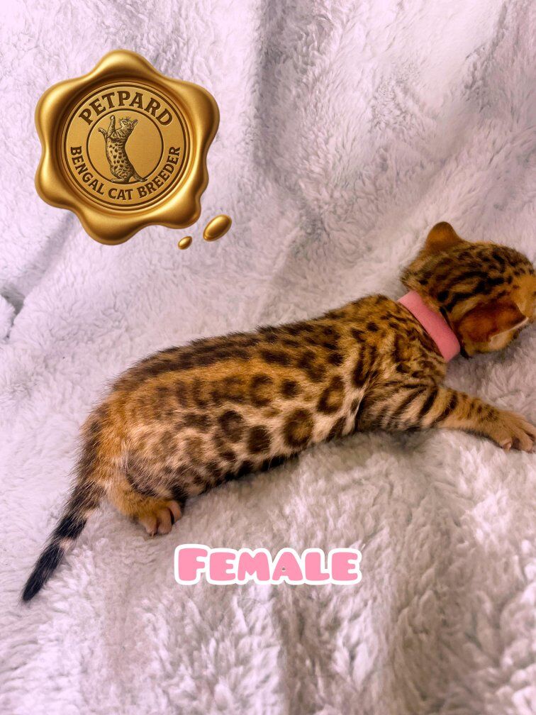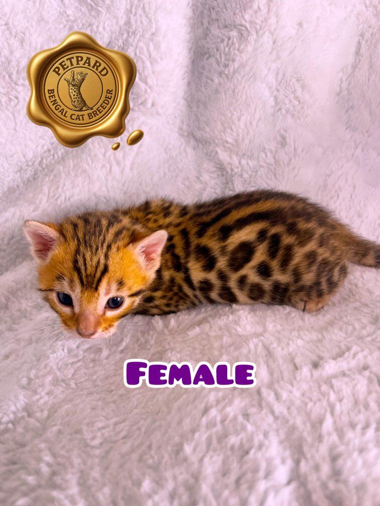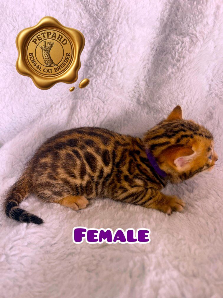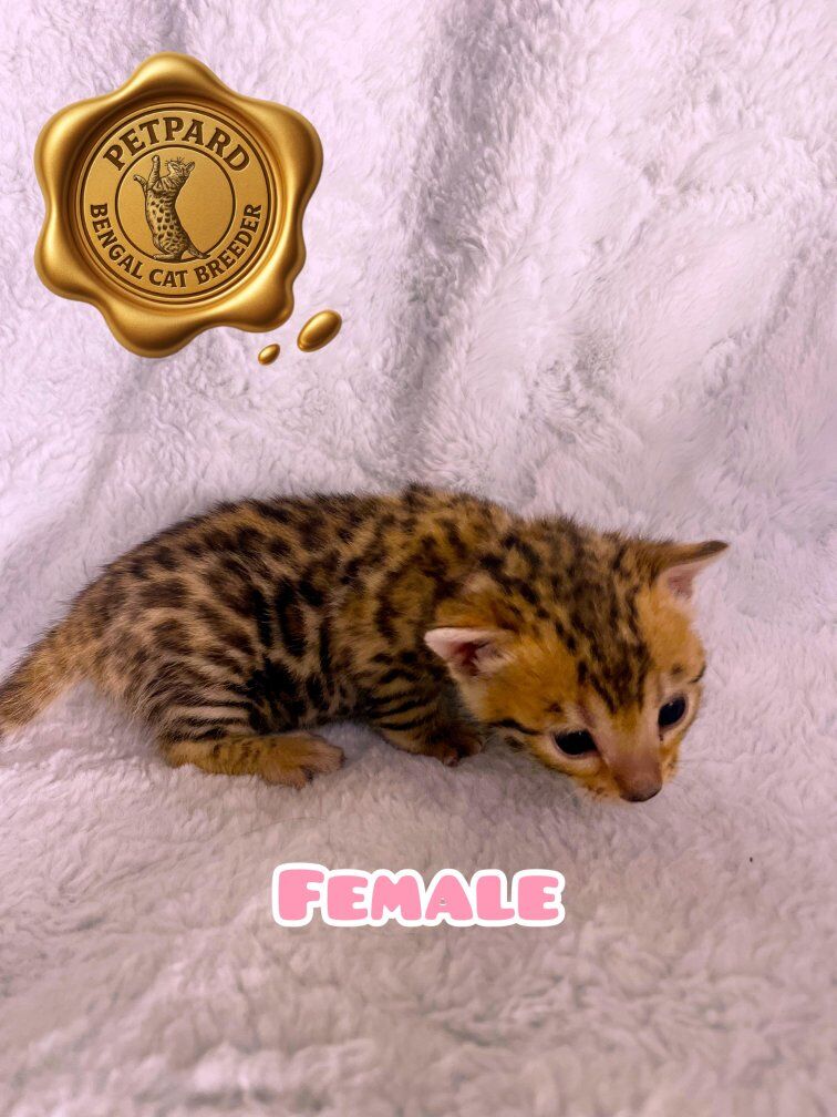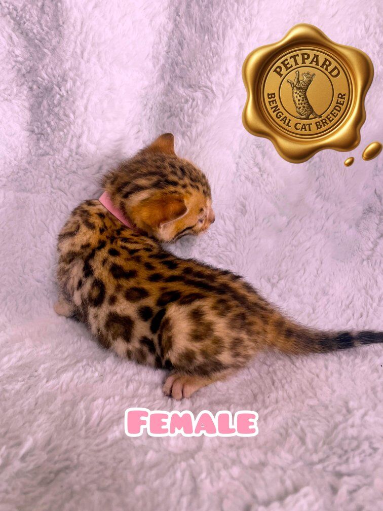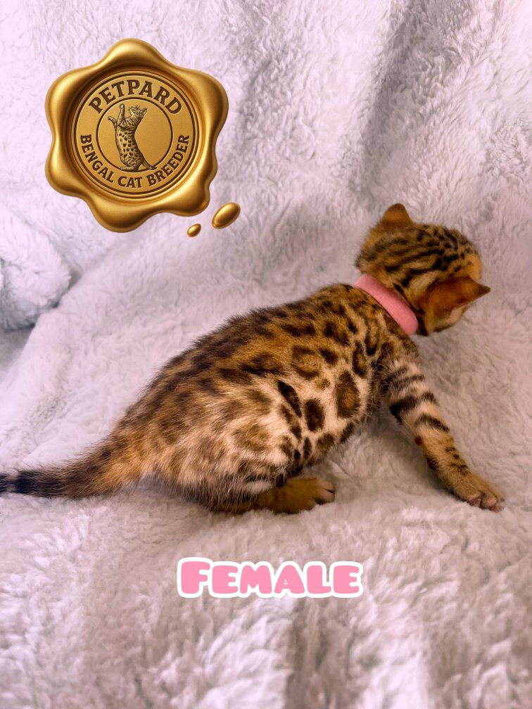 Bengal kittens are in high demand and are considered hypo allergenic with minimal shedding. They are very smart and can be a therapy pet. They can be leashed trained and can play fetch. They love to play with water. They have been well cared for and played with by my kids. They will come litter trained and ready to go. The parents are pure bred bengal cats. These kittens will be sold as pets only and will make a tremendous addition to your family. We have included some pictures of the mom and dad at the end so you can get an idea of what they might look like fully grown.