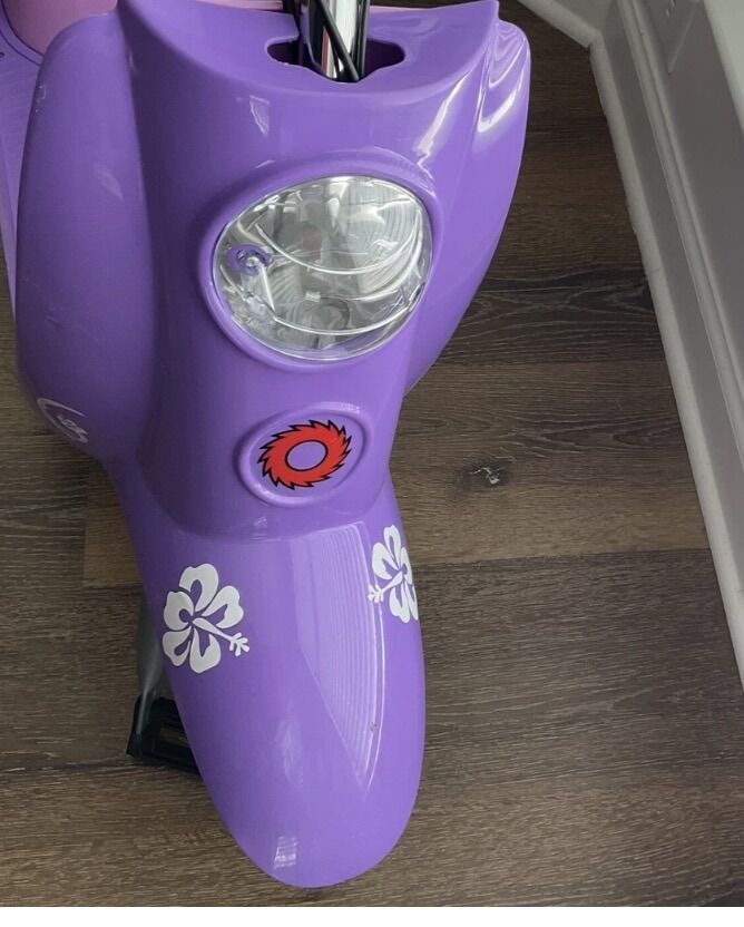 Includes charger and scooter. Headlight has a crack in it and there are a few scratches on it but it runs well and probably has less than 10 hours use on it.