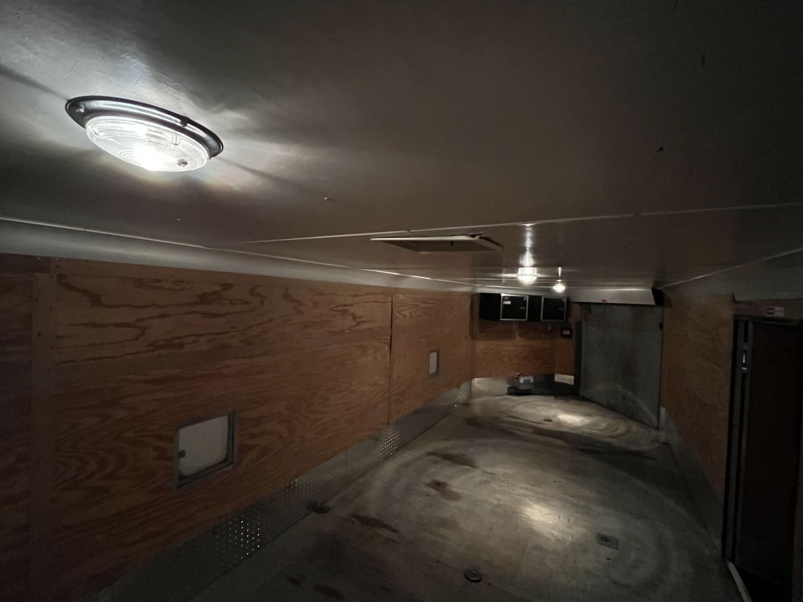 This double axel trailer was used for storage the last few years. Time to let it go. It’s in pretty good shape for the year and everything works. Running lights work. Interior lights work. Tired are like new. Call or text with questions or for more info. Spare tire is in great shape. Foldable bench, two cabinets and battery. It’s a 2000 year.