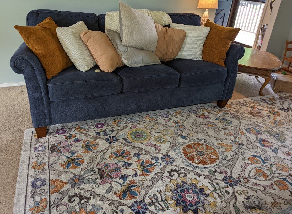 ZelleColorful area rug in great condition; we moved and it just no longer fits our space. Currently sold for $329 new.