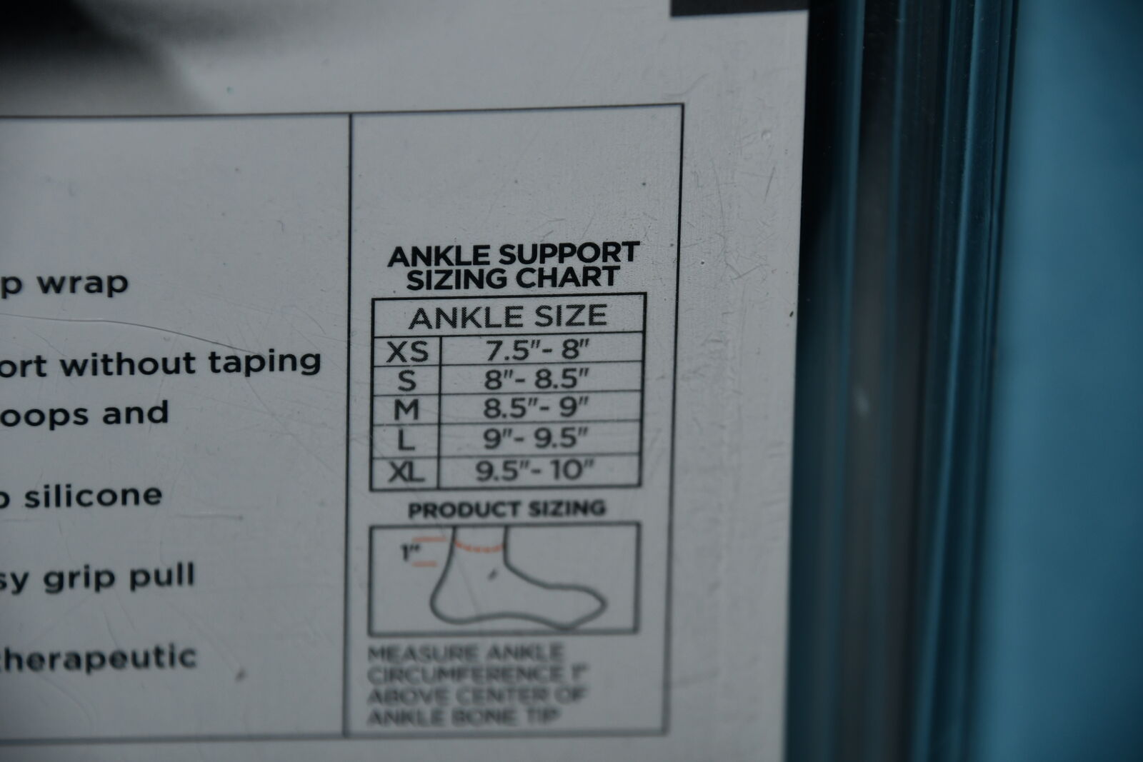 This NEW, SEALED "ANKLE SUPPOT WRAP is SIZE M. It is for the LEFT or RIGHT FOOT. Our home is smoke free. Questions??? Please ask. We are located in Plain City. Cash only please.